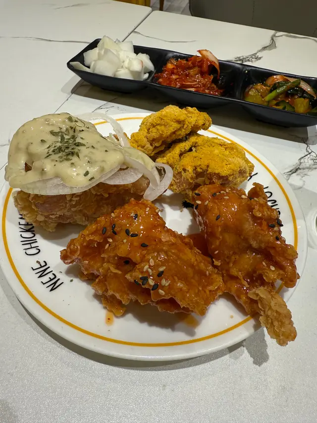 <Nene Chicken>Nene Chicken係韓國No.1人氣炸雞品牌,1999年創立,全球有超過1800間分店,香港、台灣、日本、澳洲都見到佢身影。主打韓式炸雞,外皮極脆、雞肉多汁,仲有多款獨門口味:甜辣洋釀、醬燒洋釀、蜂蜜蒜、青陽美乃滋☺️雞肉全部韓國直送炸粉,炸雞控必試!🍗#mochcouple_hk旺角搵食團⸝⸝⸝♡ ꔛ ꔛ ꔛ ꔛ ꔛ ꔛ ꔛ ꔛ ꔛ ʕ´•ᴥ•ʔ ‧˚Nene Chicken 90分鐘韓式炸雞放題($149)超吸引!$149就可以任食多達10款炸雞、雞翼、9款韓國小食(魚糕串、辣炒年糕、炸醬麵、芝士粟米等)+汽水任飲🥤逢星期一、三於旺角朗豪坊分店限定,3人同行送芝士火鍋/椰子烤豬骨,4人送迷你部隊鍋,打卡又飽肚!…查看更多