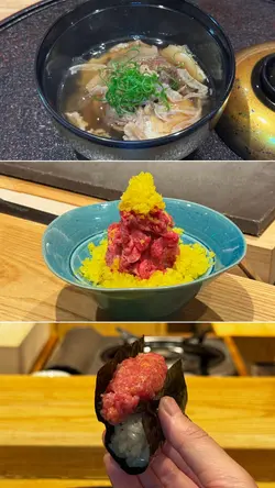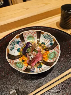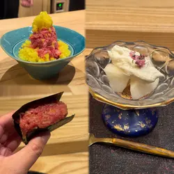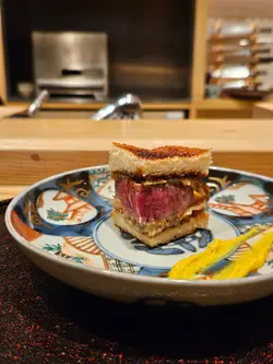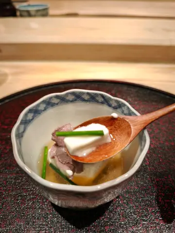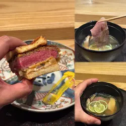位于中环歌赋街「Nikutoieba Matsuda」是来自日本奈良的和牛割烹料理专门店,在日本非常有名气,更获得米芝莲推荐餐厅,而且更是长期预约困难,在香港开业以来一直受欢迎,现在更开放午市预约🫰餐厅主打和牛割烹料理并以omakase方式呈现,将和牛不同部位配合不同食材,为食客带来美味惊喜,和牛控真系唔可以错过👍今日就和朋友来品尝午市12道菜套餐,更可即席欣赏拥有超过入厨超过30年经验的日藉主厨「大里健一」先生的精湛厨艺,品尝到一顿惊喜美味的和牛盛宴😋⭐️和牛割烹料理 $1,280/pp (另收加一服务费)店家自设熟成柜够晒专业,是次盛宴的和牛分别来自宫崎县、鹿儿岛!✨昆布渍和牛刺身伴菊花芡、海胆、山葵|牛肉刺身软腍有咬口充满牛香,北海道海胆油润甘香,配上清爽的芡汁,味道清新开胃✨炭烧和牛伴秋茄子、和风醋汁、茗荷、白葱、牛肩背,紫苏、苋菜|和牛边位部份焦香,肉质呈粉红状态,入口多汁即化,清甜Juicy的茄子,配各种提鲜的配菜,好有田园风味✨藁烧和牛牛舌伴山葵、柚子胡椒|从未食过入口如此软腍浓味的牛舌,师傅更用和秆草即场烟熏,充满香气,极致美味✨和牛伴松茸、葛切、酢橘|用汤呈现一道菜式,汤头充满日本水果酢橘的酸香,配上软嫩的和牛和葛切粉丝,感觉上食汤粉一样,好滋味✨吉列和牛菲力三文治伴自家制奈良渍他他酱、自家制酱汁|吉列脆浆厚薄适中非常酥脆,和牛用上牛柳中央最高级的部位,肉味香浓有咬口,吐司师傅用炭烧过非常讲究,配上特制酱汁和洋葱粒,味道口感绝对惊艳✨和牛里脊肉他他拌腌黄萝卜、海苔寿司|和牛他他遇上酸萝卜真系绝配,师傅即场手剁,他他入口香滑细致,味道带点甜香,配上海苔和赤醋饭,齿颊留香✨奈良县梨拌木绵豆腐、马斯卡彭乳酪、紫苏花穗|中场时间可以清清味蕾,梨嘅清甜爽口配合芝士的细致香滑,完美嘅组合✨炭烧熟成和牛西冷、炭烧红椒、新鲜黑胡椒盐渍、结晶盐|熟成的肉质特别有弹性,边位带少少脂肪充满炭香,简单沾上海盐和胡椒粒,已经非常之好食✨和牛里脊肉伴松茸寿喜烧|牛肉油花丰厚肉质细致软嫩,松茸Juicy 带着独有的香气,寿喜烧酱汁吸收了松茸,味道甜香浓郁✨土锅炊饭 、渍物软熟充满米香的米饭,配上寿喜烧牛肉和日本蛋黄烧汁,真系人间美味✨和牛咖哩饭|和牛肉酱意粉|和牛丼可供选择我选择咗味道甜辣浓香的咖哩,伴上和牛粒和土锅炊饭 ,惹味得很✨自家制 Gelato口感绵滑的云呢拿口味Gelato,配上日本清甜提子,作为是次盛宴完美的终结…查看更多