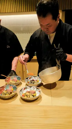 最近终于俾我排到中环呢间日本过江龙,午市嚟食性价比高👍🏻 岩晒想食高质和牛嘅朋友仔❤️ 再加上超水准服务态度~ 令人感受到极致割煮盛宴,原来可以去到咁完美~ 每样菜式都做得非常令人回味,最钟意系和牛三文治同寿喜烧~真心推荐!值得再黎👍🏻先讲昆布渍和牛刺身~ 和牛刺身切得薄薄片,昆布渍得劲入味,咬落去劲嫩滑多汁,带阵海藻鲜香,海胆劲鲜甜突出,口感层次分明🥢之后嚟咗炭烧和牛伴秋茄子有齐银杏、山椒大根蓉、木の芽,和牛炭烧得外焦内嫩,肉汁锁住,咬落去牛香劲浓郁,而山椒大根蓉微微辣提味‼️藁烧和牛牛舌估唔到用禾秆草烟熏牛舌系咁好食!除咗弹牙有嚼劲,烟熏入味,大大提升牛舌回甘嘅感觉! 可以话系必食❤️💥和牛里脊肉他他上等牛肩背配上腌黄萝卜切到极细! 口感滑致冇揸!仲带出少少酸甜,配海苔寿司咬落去口感丰富,食完劲开胃👍🏻和牛云吞师傅上菜前会先用清水喷湿汤碗表面😱 估唔到系源自当年战国时代,招待贵宾时,作为食品安全嘅表现。云吞皮薄薄哋,汤头清甜带阵姜香🔥吉列和牛菲力三文治重点黎喇‼️ 师傅用上精心熟成两个月嘅宫崎县西冷牛扒制作嘅三文治🥪 油脂爆炸,劲好食停唔到口🔥熟成和牛炭烧熟成后牛味更劲浓,好想再食多件🥹🤩和牛里脊肉寿喜烧+ 栗子炊饭寿喜烧配和牛简直系绝配~ 牛肉,加上蛋黄嫩上加嫩! 加埋栗子炊饭一啖食入口~ 有啲升仙嘅感觉🤣⭐️和牛咖哩饭最后煮食拣咗咖喱饭~ 咖喱偏辛口,和牛碎入味。食完饱得非常满足🍦甜品自家制 Gelato 今次系南瓜味,味浓!好似食左成个南瓜但同时滑顺入口,甜度啱啱好👍🏻 作为完满总结…查看更多