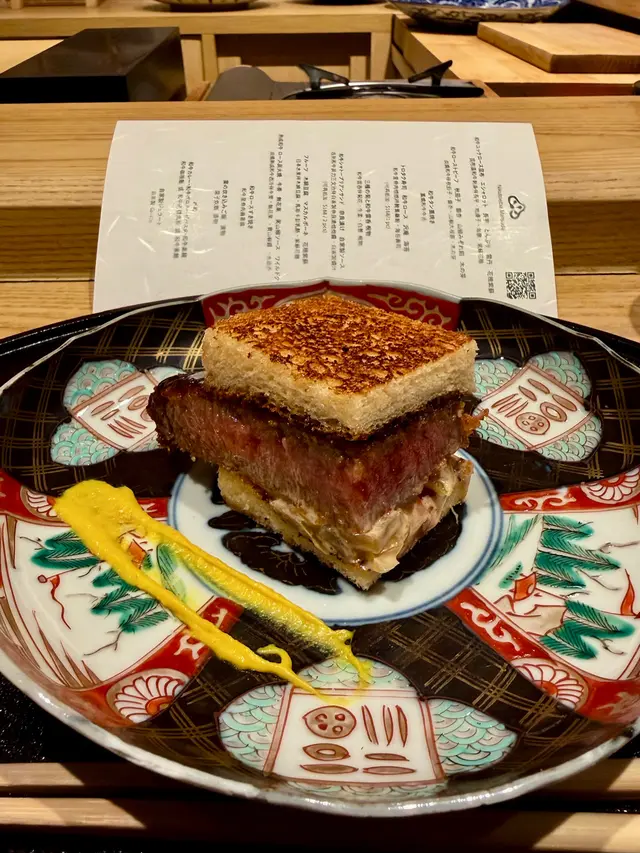 最近終於俾我排到中環呢間日本過江龍,午市嚟食性價比高👍🏻 岩晒想食高質和牛嘅朋友仔❤️ 再加上超水準服務態度~ 令人感受到極致割煮盛宴,原來可以去到咁完美~ 每樣菜式都做得非常令人回味,最鍾意係和牛三文治同壽喜燒~真心推薦!值得再黎👍🏻先講昆布漬和牛刺身~ 和牛刺身切得薄薄片,昆布漬得勁入味,咬落去勁嫩滑多汁,帶陣海藻鮮香,海膽勁鮮甜突出,口感層次分明🥢之後嚟咗炭燒和牛伴秋茄子有齊銀杏、山椒大根蓉、木の芽,和牛炭燒得外焦內嫩,肉汁鎖住,咬落去牛香勁濃郁,而山椒大根蓉微微辣提味‼️藁燒和牛牛舌估唔到用禾稈草煙燻牛舌係咁好食!除咗彈牙有嚼勁,煙燻入味,大大提升牛舌回甘嘅感覺! 可以話係必食❤️💥和牛里脊肉他他上等牛肩背配上醃黃蘿蔔切到極細! 口感滑緻冇揸!仲帶出少少酸甜,配海苔壽司咬落去口感豐富,食完勁開胃👍🏻和牛雲吞師傅上菜前會先用清水噴濕湯碗表面😱 估唔到係源自當年戰國時代,招待貴賓時,作為食品安全嘅表現。雲吞皮薄薄哋,湯頭清甜帶陣薑香🔥吉列和牛菲力三文治重點黎喇‼️ 師傅用上精心熟成兩個月嘅宮崎縣西冷牛扒製作嘅三文治🥪 油脂爆炸,勁好食停唔到口🔥熟成和牛炭燒熟成後牛味更勁濃,好想再食多件🥹🤩和牛里脊肉壽喜燒+ 栗子炊飯壽喜燒配和牛簡直係絕配~ 牛肉,加上蛋黃嫩上加嫩! 加埋栗子炊飯一啖食入口~ 有啲升仙嘅感覺🤣⭐️和牛咖哩飯最後煮食揀咗咖喱飯~ 咖喱偏辛口,和牛碎入味。食完飽得非常滿足🍦甜品自家製 Gelato 今次係南瓜味,味濃!好似食左成個南瓜但同時滑順入口,甜度啱啱好👍🏻 作為完滿總結…查看更多