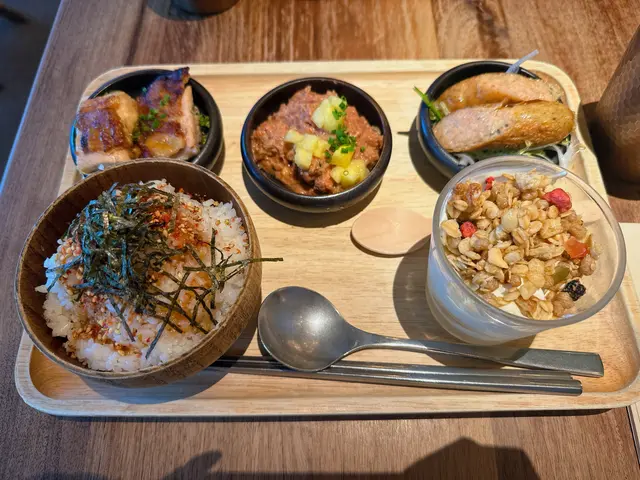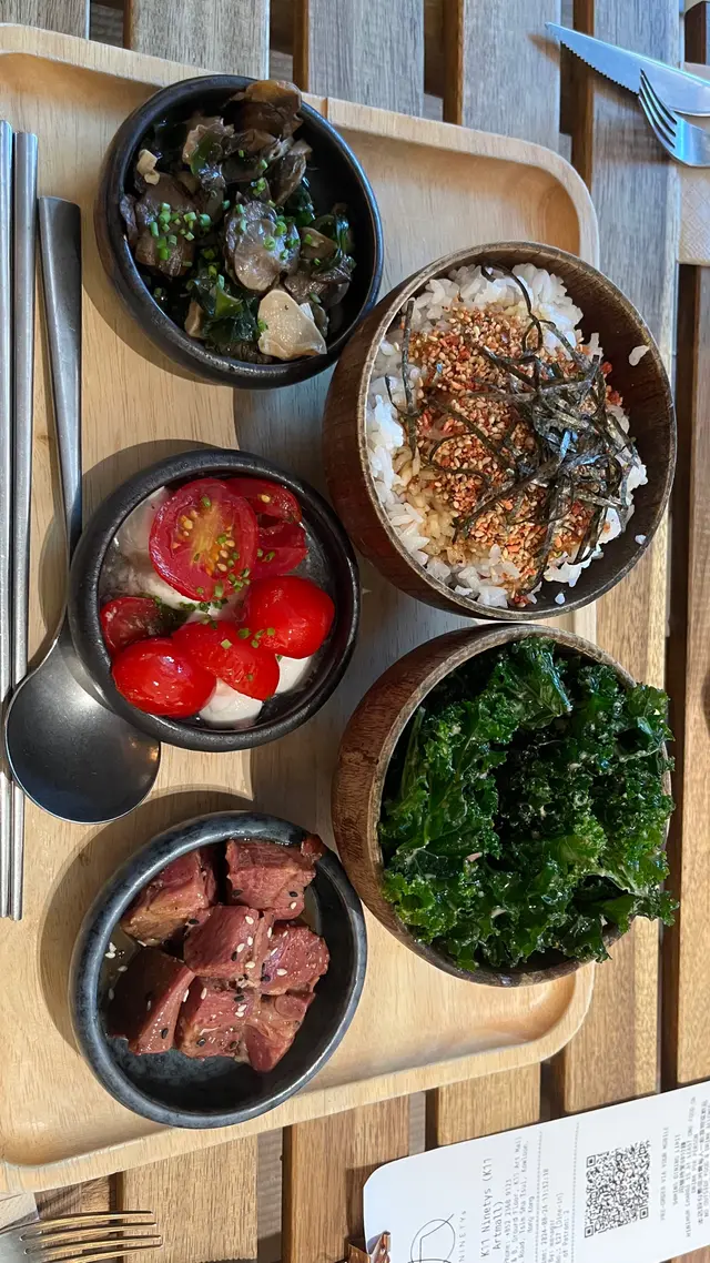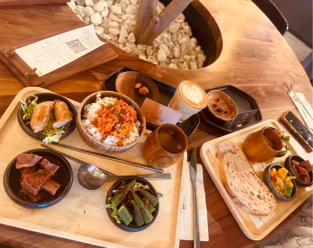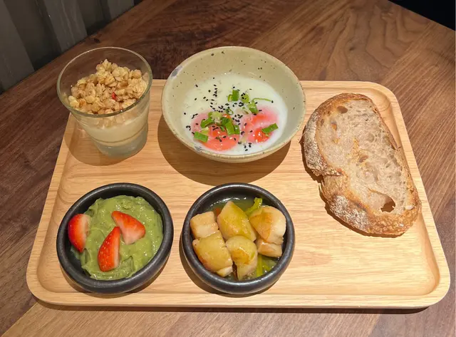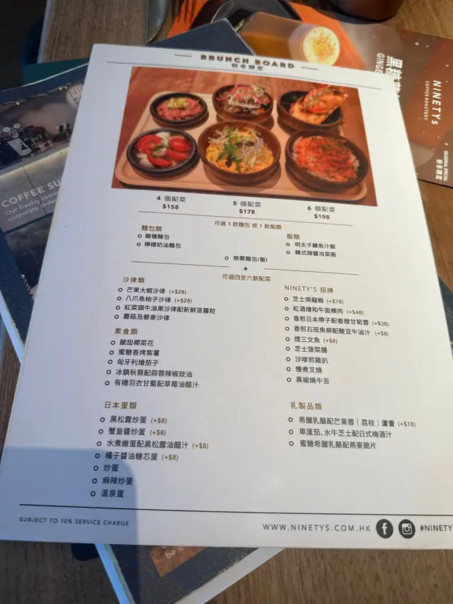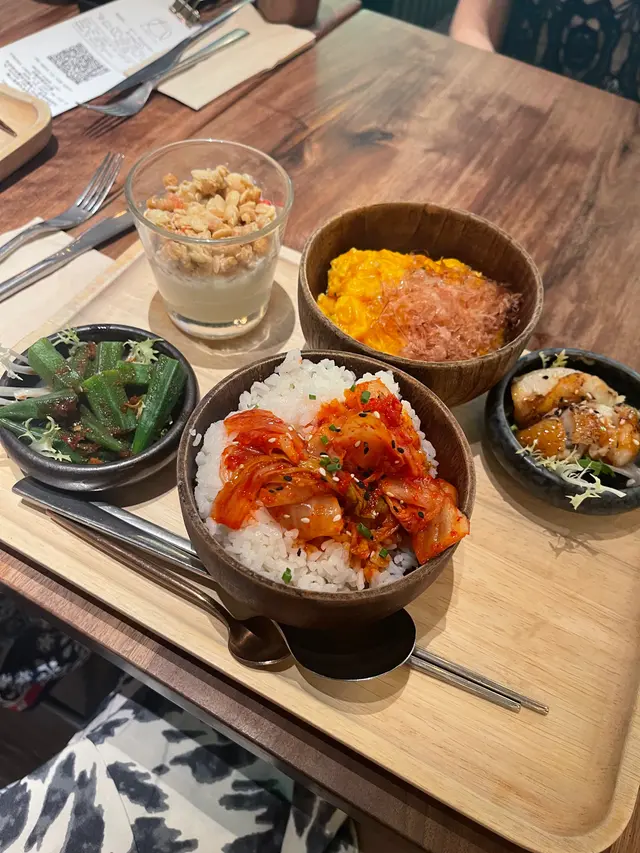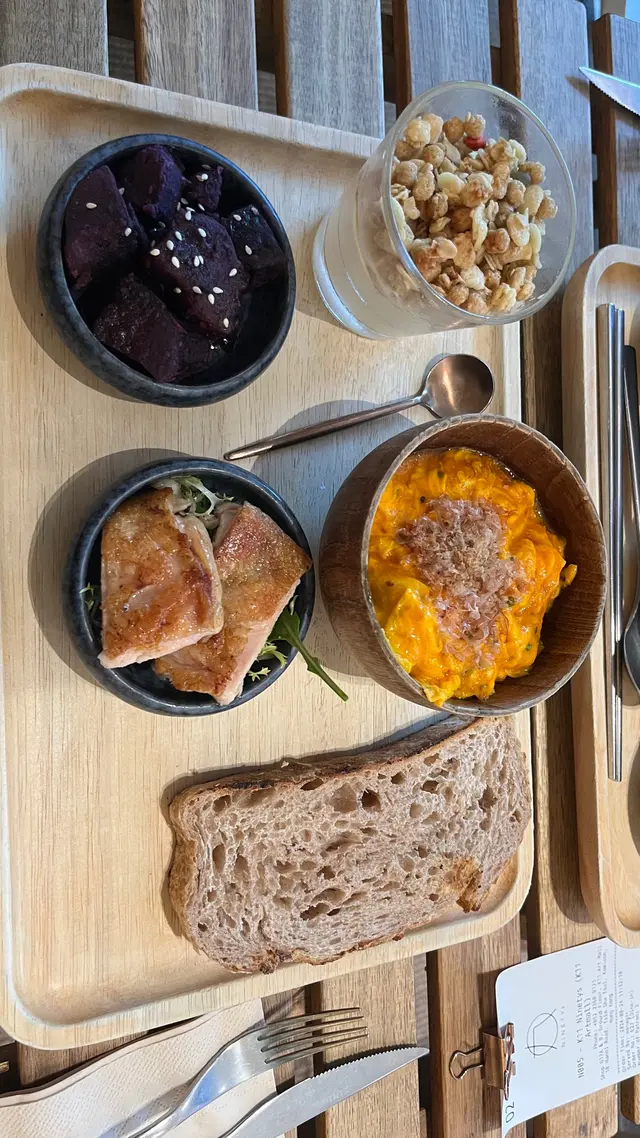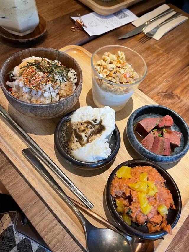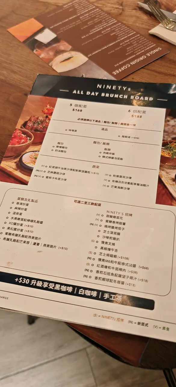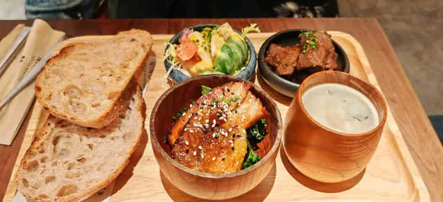 見到佢個all day brunch menu 好多選擇,所以沖咗入嚟食。首先湯品可以揀味噌湯或者加58蚊要個龍蝦湯。 今日冇加錢飲咗個味噌湯, 佢有舊三文魚肉喺裏面,所以特別鮮甜。麵包或者飯類,我揀咗奶油麵包,多士一件,沒有特別。蔬菜或沙律好多選擇,我揀咗個紅菜頭牛油果沙律新鮮菠蘿粒, 要加十蚊㗎。 但係佢將啲材料壓到爛曬變咗蓉。 食唔到食物嘅層次,淨係食到紅菜頭嘅腥味。配菜就選擇好多,可以揀二至三樣。我揀咗個蜜糖希臘乳酪配燕麥脆片,同埋沙爹煎雞扒, 兩樣都好失望。不過,我朋友好識揀, 佢叫咗芒果海鮮沙律,紅酒燴和牛面頰肉, 同埋慢煮叉燒, 都好好味。結論係, 餐廳嘅食物係中規中矩,有好有唔好,睇下你彩數。 可惜佢杯咖啡係偏酸,唔係我杯茶。…查看更多