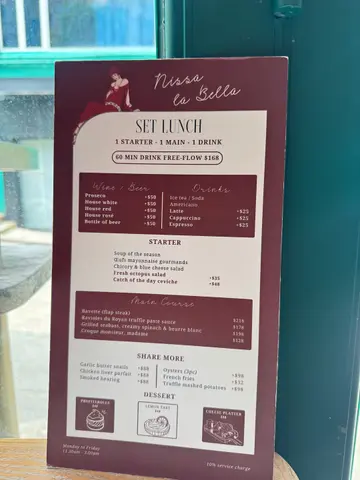 🇫🇷 一秒穿越巴黎!上环法式浪漫餐厅Nissa la Bella ,气氛围爆灯,浪漫约会必到。法式美食记录上环真系好多野宝藏餐厅发掘~今次拣咗差馆上街10-14号嘅Nissa la Bella,巴黎感爆灯嘅法式餐厅!📷 性价比高,浪漫又好味,简直觉得法国味爆棚!无论朋友定约会都必嚟,感受巴黎风情💃🏻😍 啡红色卡座、复古海报、型爆酒吧位,无论系闺蜜聚会定浪漫约会chill一chill,都靓到想不停影相✨,打卡位一流!餐厅气氛超正,饮住红酒feel住巴黎街头,真系好relax好有情调~食物同样好有水准,食完会想Encore 🔥🥚 法式魔鬼蛋一半鸡蛋上铺满靓靓蛋黄丝,似雪花咁铺面!食落去超香蛋黄味,软绵绵,口感一绝~🥗 菊苣蓝芝士沙律口感丰富有层次!蓝芝士、爽口蔬菜、提子同少少酸萝卜,酸酸甜甜再带点蓝芝士咸香,劲开胃😍🥩 煎牛腹扒配黑椒牛肉汁+田园沙律牛扒鲜嫩又多汁,加埋浓香黑椒牛肉汁,完全系打卡味觉双满足!必定要点牛肉汁更加好味。配菜沙律分量又够多~🐟 烤大西洋鲈鱼柳厚切又新鲜嘅鲈鱼柳+香浓微酸白汁,鱼肉超嫩,超爱一齐点埋菠菜食,有惊喜!🍰 甜品时间法式泡芙:有仪式感,特别于倒朱古力酱时候,+creamy忌廉+雪糕,一流!份量十足,甜到入心💗柠檬挞:滑滑柠檬馅+轻盈忌廉,酸甜平衡啱啱好,唔会腻~…查看更多