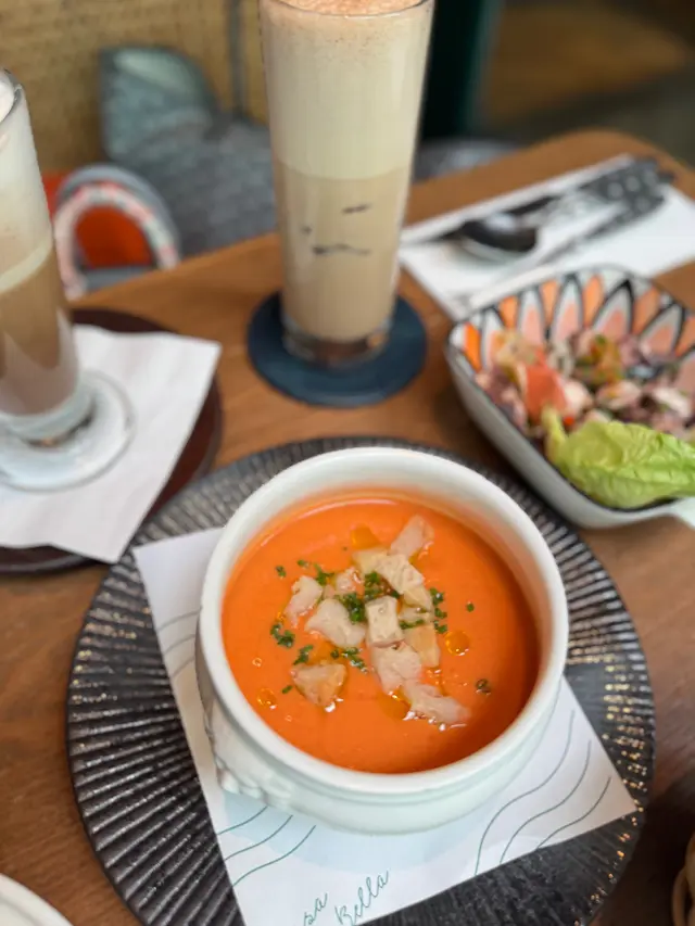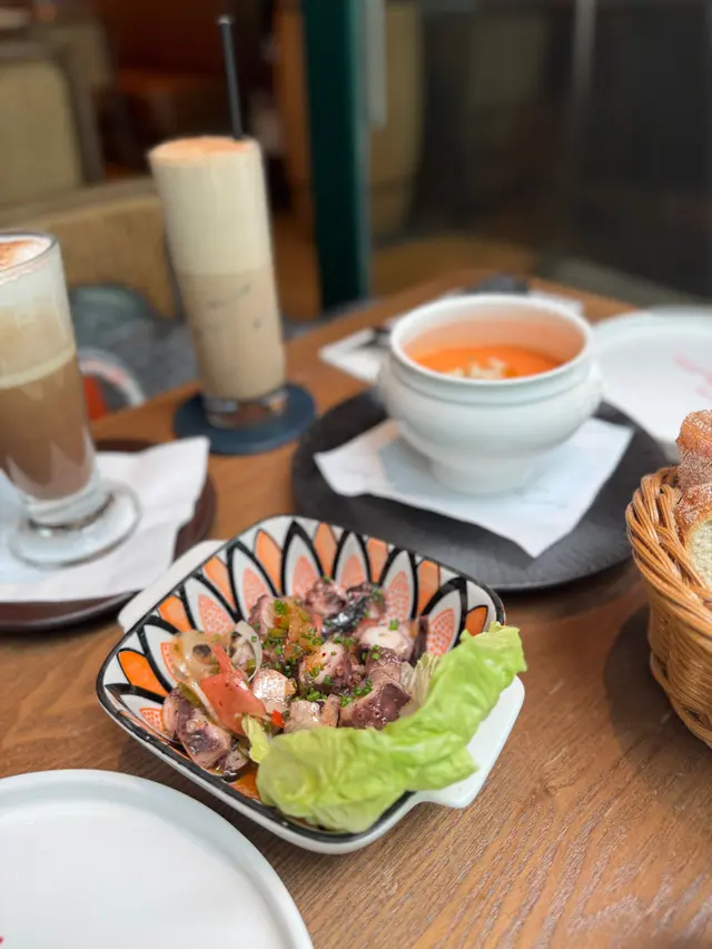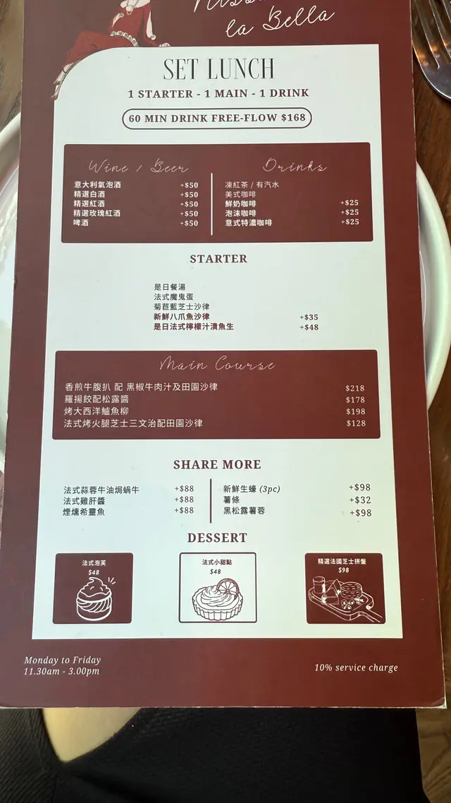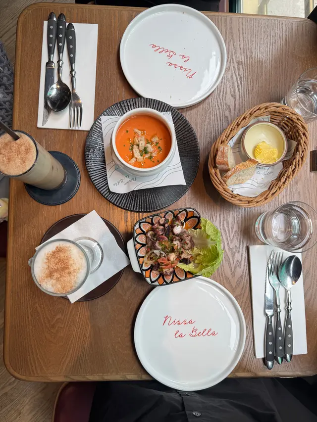 🇫🇷 一秒穿越巴黎!上環法式浪漫餐廳Nissa la Bella ,氣氛圍爆燈,浪漫約會必到。法式美食記錄上環真係好多野寶藏餐廳發掘~今次揀咗差館上街10-14號嘅Nissa la Bella,巴黎感爆燈嘅法式餐廳!📷 性價比高,浪漫又好味,簡直覺得法國味爆棚!無論朋友定約會都必嚟,感受巴黎風情💃🏻😍 啡紅色卡座、復古海報、型爆酒吧位,無論係閨蜜聚會定浪漫約會chill一chill,都靚到想不停影相✨,打卡位一流!餐廳氣氛超正,飲住紅酒feel住巴黎街頭,真係好relax好有情調~食物同樣好有水準,食完會想Encore 🔥🥚 法式魔鬼蛋一半雞蛋上鋪滿靚靚蛋黃絲,似雪花咁鋪面!食落去超香蛋黃味,軟綿綿,口感一絕~🥗 菊苣藍芝士沙律口感豐富有層次!藍芝士、爽口蔬菜、提子同少少酸蘿蔔,酸酸甜甜再帶點藍芝士鹹香,勁開胃😍🥩 煎牛腹扒配黑椒牛肉汁+田園沙律牛扒鮮嫩又多汁,加埋濃香黑椒牛肉汁,完全係打卡味覺雙滿足!必定要點牛肉汁更加好味。配菜沙律分量又夠多~🐟 烤大西洋鱸魚柳厚切又新鮮嘅鱸魚柳+香濃微酸白汁,魚肉超嫩,超愛一齊點埋菠菜食,有驚喜!🍰 甜品時間法式泡芙:有儀式感,特別於倒朱古力醬時候,+creamy忌廉+雪糕,一流!份量十足,甜到入心💗檸檬撻:滑滑檸檬餡+輕盈忌廉,酸甜平衡啱啱好,唔會膩~…查看更多