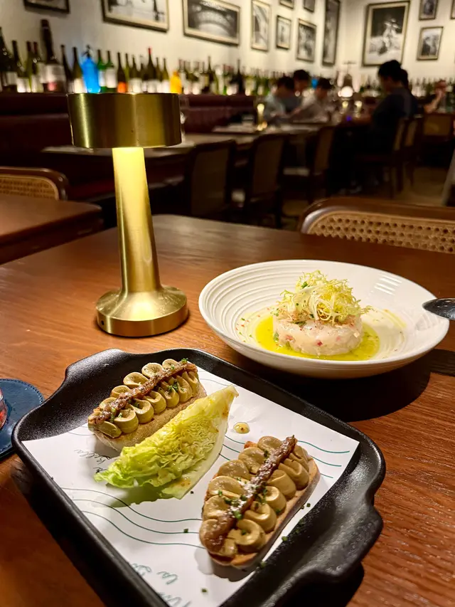 之前去巴黎旅行都好鐘意去小酒館用餐,可以品嘗正宗地道嘅法式味道返到香港都好想搵間巴黎小酒館享受一下係上環差館上街就有一間裝潢走復古巴黎風格嘅小酒館店內牆身掛著大量黑白舊照片,大量酒樽做裝飾,配上木製家具,優雅嘅氛圍,營造出法式嘅浪漫感真係非常適合情侶約會或三五知己一同聚餐食物方面:Smoked Sardines : 底層係傳統冷湯配上意大利黑醋,煙燻沙甸魚味道濃郁,配搭上清新果香嘅麝香葡萄一齊食,味道平衡得剛剛好,一款好有驚喜嘅前菜Chicken Liver Parfait : 係法式雞肝醬配脆麵包,雞肝醬口感細膩柔滑,入口即化,帶有濃郁的肝臟香氣和奶油般的綿密感,配上外皮酥脆內裡鬆軟嘅麵包,與雞肝醬的柔滑形成鮮明對比,口感豐富,味道鮮明,令人回味Rigatoni Carabineros : 賣相非常吸睛嘅紅蝦龍蝦汁粗管麵,用上熱盤上枱,份量超多,足夠兩個人食,粗管麵口感有嚼勁,吸收曬濃郁嘅龍蝦汁,再配上超大隻嘅西班牙紅蝦,蝦肉鮮甜爽彈, 蝦膏鮮味無比,充滿鮮味嘅招牌主食之一Profiteroles : 外層鬆脆嘅法式泡芙,配上雲呢拿雪糕、鮮忌廉及朱古力醬,再淋上朱古力醬,令到口感更加豐富,美味嘅法式甜品Rose : 以玫瑰糖漿、檸檬汁、蘇打水為基調,再加上西柚嘅酸甜味道,口感清新…ดูเพิ่มเติม
