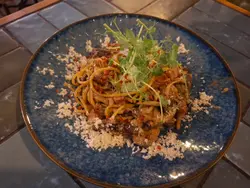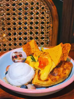 几年前食过呢间餐厅食物质素唔错😋无论装修及菜式名都充满趣味🤪环境设计好特别布置又有心思❤️餐厅主打西式料理🍽️扫𝙌𝙍 𝙘𝙤𝙙𝙚自助下单📱方便快捷不过用餐时间只有90分钟要注意二人晚市套餐 $588是日餐汤(2碗)🍄🟫🥣今日的汤是忌廉蘑菇汤,饮到好浓郁菇菌味,口感较为稀身,而我个人比较中意饮浓稠的质感,觉得会较实在啲😂小食豆腐鱼饼(2件)🧆2件豆腐鱼饼外型好似薯饼,表面炸到金黄香脆,鱼饼内馅仲有粟米粒🌽、红萝卜粒🥕,咬落去口感唔会太淋,配上泰式酱汁更滋味主菜辣椒螃蟹酱蟹肉蟹籽意粉🦀🍝意粉铺满蟹肉,蟹籽,车厘茄🍅,杂菌🍄🟫,加入辣椒螃蟹酱及番茄酱混合调味,意粉口感烟韧弹牙,每条意粉都挂满酱汁,浓烈的酸甜香辣有啲似泰式辣酱🌶️,越食越过瘾惹味十足😋罗望子酱烧美国猪肋骨配薯条🐷🍟烧猪肋骨🐷厚肉好大条,啖啖肉肉质软嫩,咬落去肉好易离骨,沾满罗望子酱汁超入味,配上香脆的炸薯条🍟及沙律菜🥗饮品桂花柑桔苹果沙冰🍎🍹 +$28加$28转特饮,有3片薄切苹果片🍎做点缀,饮到清香的桂花味及苹果味,隐约有微微柑桔味,沙冰口感冰爽,好岩夏天饮非常消暑解渴蜂蜜水蜜桃茶(冻)🍑🍹饮到香浓水蜜桃味,底部有少量蜜桃粒有咬口是日心情甜品🍰甜品是两件细细件开心果巴斯克蛋糕,微微焦香及淡淡的开心果味好夹冬阴功大虾薄比萨(辣)🦐🍕𝙋𝙞𝙯𝙯𝙖🍕饼底薄身,切好分成6件,每件𝙋𝙞𝙯𝙯𝙖都有大大只鲜虾🦐爽口弹牙,香甜菠萝🍍,冬阴功薯蓉,青尖椒🫑及紫洋葱🧅,配上芝士🧀食落几有泰国风味,同朋友一齐分享好满足🥰…查看更多