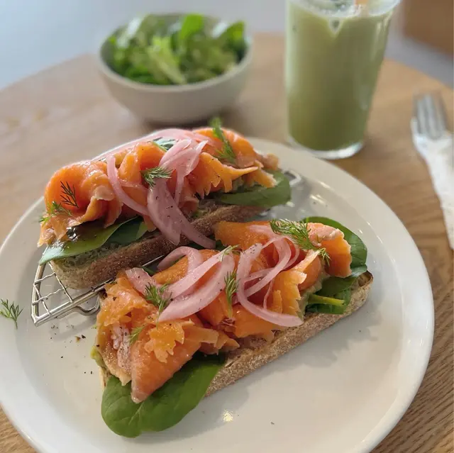 这间cafe光线充足,以木系和白色为主,简洁干净。座位之间不会太逼,位几好坐,出边有啲阳光照入嚟,摊咗成个下昼做吓啲文件嘢又或者chill下都好放松。叫咗个all day breakfast,炒蛋够滑,香肠同菇都煎得几香,同埋个薯饼真系好好食,有时我会另外再加多块薯饼。我平时都会叫抹茶latte,因为就算叫冻嘅,都唔会淡咗味道,仍然会保持抹茶浓嘅味道。整体好舒服,会再嚟。…查看更多