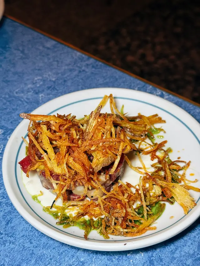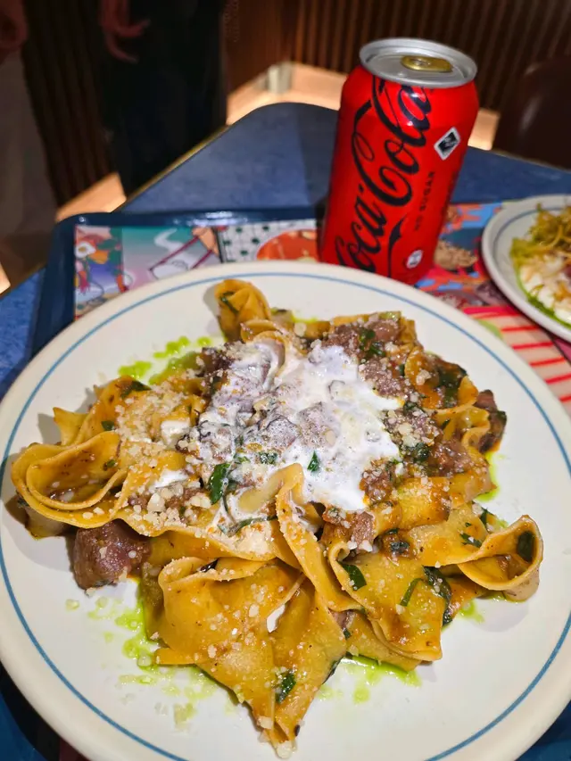 今次黎到中環Basehall✅ 同🐧🐧 buddy 試了主打手工意粉嘅Nocino 😋 🐧🐧 每人㨂咗一份非常豐富嘅 F 套餐😚 這個套餐包含前菜、主食、甜品和飲品,份量和內容都令人非常滿意👍 前菜選了和牛牛肉他他同埋油炸芝士球😚 牛肉他他選用新鮮和牛,肉質細膩,調味偏向清新,吃得出牛肉的本味,沒有過多修飾,帶點橄欖油和微微酸香,配搭得恰到好處❤️ 油炸芝士球外層炸得金黃酥脆,內裡的芝士熱辣拉絲,咬下去有明顯嘅層次感,鹹香濃郁又不會膩口,作為前菜絕對出色✅ 主菜方面,店員誠意推薦嘅波浪麵果然名不虛傳😆 麵條全人工製作,每條都有微微波浪形狀,掛汁力極佳😚 醬汁香濃,混合了堅果香和一點辣意,味道層次非常豐富,吃起來不會單調❣️ 牛臉頰寬帶麵同樣出色👍 寬麵煙韌有嚼勁,牛臉頰炆得非常入味,肉質軟腍,配合濃郁醬汁,整體非常飽滿有深度😎 甜品係經典嘅提拉米蘇❤️ 層次分明,忌廉輕盈,咖啡酒味濃而不烈🤗 蛋糕體濕潤,味道甜中帶點微苦,為整個套餐畫上圓滿句號🌟 飲品方面,木槿格雷伯爵茶汽水帶有淡淡花香和茶香,清新又解膩📍 有氣橙汁則酸甜適中,很適合搭配較濃味的主食,飲完令人精神一振🤤 …查看更多