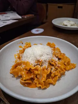 前几日约左个朋友去左大坑一间主打手工意粉🍝食Dinner😬啲手工意粉真系好好食🥶仲要系自家制的😎我同朋友食到赞不绝口😜真心推介⭐️⭐️⭐️⭐️⭐️布袋芝士配意式无花果芥末酱配料有开心果、薄荷油、意大利风干火腿~整体味道清爽不腻😋好开胃🤤苦叶沙律配料有菊苣紫椰菜、梨子、核桃、贝尔珀诺芝士、蜂蜜芥末酱~清脆可口😚八爪鱼墨鱼汁鸡冠粉墨鱼汁带来浓厚风味😎鸡冠粉的质地通常非常滑嫩,咀嚼时感觉柔软😋烟熏鸭腿肉烤蜜桃宽阔面宽阔面带有弹性和韧性^_^烟熏鸭腿肉鲜嫩🤓带有独特烟熏香😜Lemon honey Gazzosa 具有清新柠檬香气😜而且好有清爽气泡感🙂↔️Hibiscus Rose Earl Grey Fizz茶香持久~清新提神^_^酸甜适中Tiramisu蛋糕较湿润但不会太湿~奶油顺滑细腻,质地轻盈😝入口即化😊餐厅环境比较细~座位唔算多😛当日我哋去到已经坐满人🤪好旺场😊…查看更多