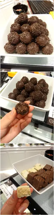好了!走到店子另一边,有个玻璃饰柜整齐地摆放著手制朱古力!冧酒松露 - 酒味浓烈!
