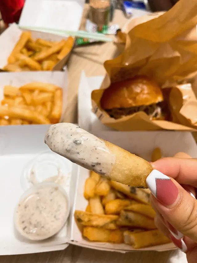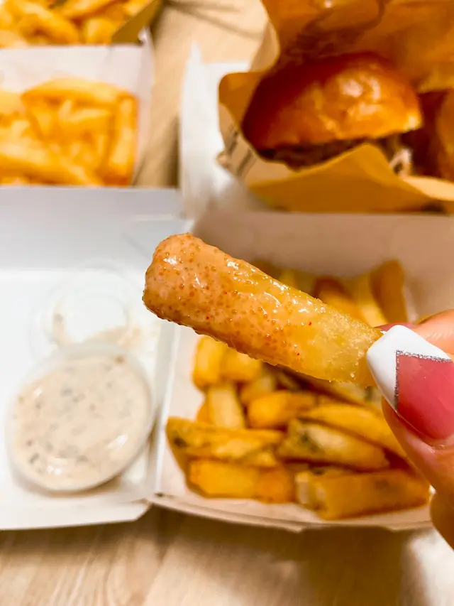 Burger 從來唔會係我諗食嘢時既首選,加上係宅在家叫外賣會好影響漢堡層層分明、薯條既香脆感,更加唔敢抱太大期望。但凡事總有意外驚喜,當中今次以明太子薯條勁推必試。慢煮手撕豬雙層漢堡 $99手撕豬有單層/雙層/三層選擇,稱用上慢煮方法,果然咬落每絲肉既肉質軟嫩鮮味Juicy,唔想食太濃味既建議選擇呢款。麻辣軟殼多蝦餅漢堡 $178(套餐連薯條、汽水)大大隻軟殼蟹炸得酥脆、蝦餅夠彈牙、配上微微麻辣既蛋黃醬,配搭惹味,係香口濃味既好選擇。炸魚芝士他他漢堡 $118 (套餐連薯條、汽水)經典配搭炸魚+他他醬,微酸既味道中和左炸物+芝士既油膩。炸魚外層外賣黎到都同樣保持到脆口。明太子薯條 (套餐加錢$15)超驚喜既醬汁,睇相都見到醬汁佈滿左超多既明太子粒粒。粗大條薯條炸得香脆,沾上呢個醬汁咸鮮味十足,啖啖爆籽享受。平常唔太好薯條都忍唔住因為呢個醬一口接一口食。三重松露薯條 (套餐加錢$15)用上松露醬、白松露油、松露粉等做成既松露醬味同樣做得出色,薯條亦灑上松露粉,惹味十足,打開盒味道就撲鼻而來。查看更多