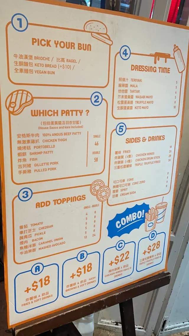見網上咁多好評,(食完唔會再信所謂foodie寫既野🙃) 放假就特登揸車入去試吓,去到見有幾個人排隊,間舖好細,出面對滿雜物,衛生認真唔係幾好🫠睇個menu,本身覺得都幾平,但睇睇下就覺得有啲伏😓個包本身就得蛋黃醬同埋一塊菜,洋蔥蕃茄乜都無,加蕃茄竟然要$4😥不過佢既然個包setting係咁,我就試下乜都唔加,叫左個安格斯牛肉,$46。個店員態度真係一流,去到乜都唔問,淨係講一句$46,之後多謝/等一陣/笑容乜都無,唔休做咁。之後見到個包,我真係呆左,你態度唔好都算,$46個包你比啲咁既野我?個包核突到,仲要唔熱既,我起碼等左15分鐘以上,我就預左你係即刻整比我啦,點知等咁耐唔熱既真係接受唔到。大家睇相就知,乾到。啲蛋黃醬真係超市都買到個種味,好普通。唔明點解有咁多好評,唔會再去🙃查看更多