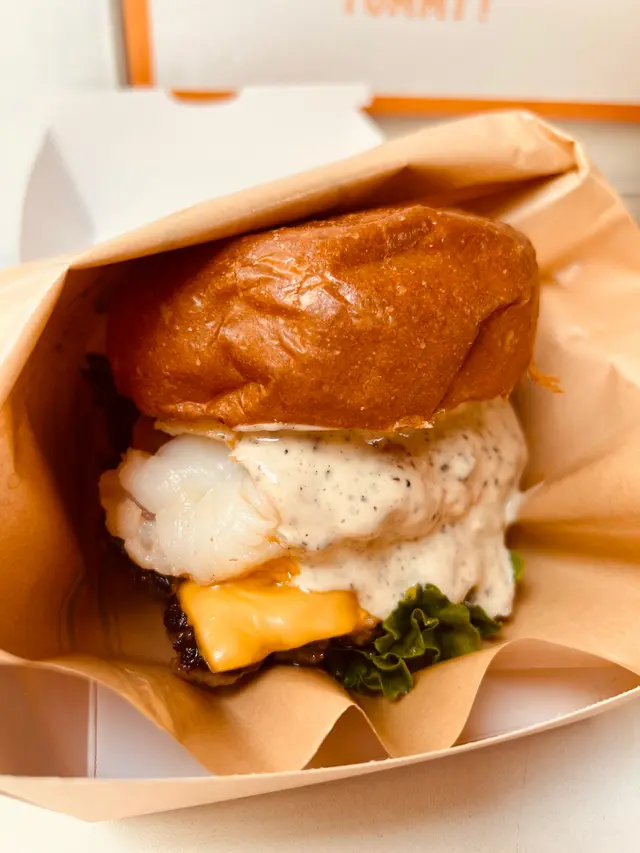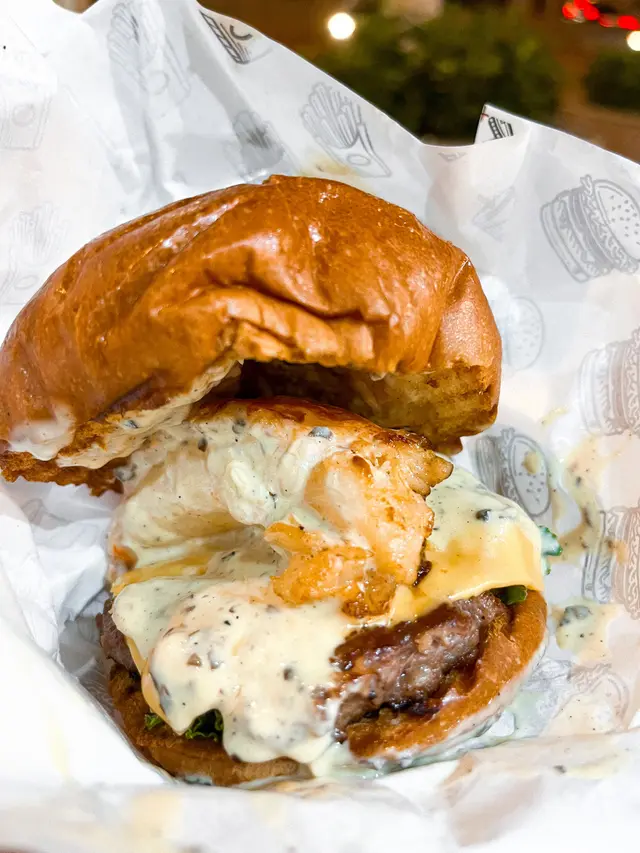 果日去紅館睇show 之前,要食個快快嘅dinner 🤓一直bookmark 左呢間burger店,一直好想試佢個龍蝦堡🤓—1️⃣波斯頓龍蝦安格斯牛堡 $98 - 餐牌寫住原價$148,仲要冇服務冇座位,真係真係唔太捨得食🥲不過好彩 到order 果時先知原來優惠$98 👍🏻 首先個包熱辣辣 外賣咗5分鐘都仲夠熱👍🏻芝士&黑松露醬汁同成個包 超超超夾! 😍終於明白左點解咁多人推介呢間店👍🏻龍蝦係新鮮嘅 一啲都唔腥 feel到係佢令呢個包變左高級漢堡 不過其實好細舊🤣👍🏻牛肉偏薄唔鞋 算唔錯 不過唔算非常juicy(醬汁太濃唔記得咗有冇牛肉味)—2️⃣薯條 $18(連汽水)👍🏻驚喜地 好好味!好脆熱辣辣! 👍🏻有薯仔味! 🥔😵‍💫份量多番啲 就好了 (不枉我明明個包ready左好耐 仲要等佢炸薯條😂)— 整體來講真係覺得個漢堡的確非一般,的確啲醬汁係好夾個包,好驚喜🤩係值得一試🤩不過個價錢,仲要外賣同埋以黃埔嘅地段黎講🥲個人就覺得真係貴左少少🤏🏻如果冇特價$148,都可以食到有啲服務而且有高質牛肉嘅漢堡🙈查看更多