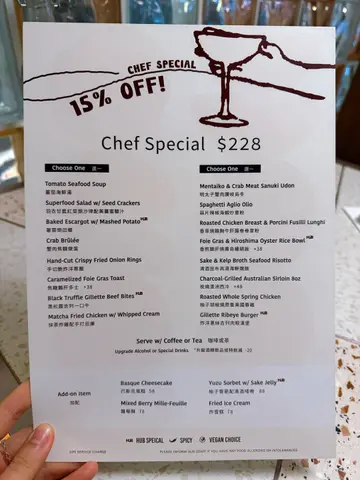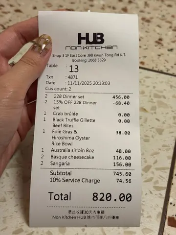 Non Kitchen Hub原来系Non Kitchen既分店💁🏻♀️内里环境宽敞舒适,好岩饮返杯Sangria🍷同friend子齐齐倾下计🤭-🌟Chef Special $228🎈Welcome foodOmg竟然有餐前小食蕃茄酥皮挞,非常清新开胃!-🎈黑松露吉列一口牛卖相虽然不太讨好😂🤣但真系炸得好香脆!-🎈蟹肉焦糖炖蛋 呢个蟹肉焦糖炖蛋越食越好食㖞癫啊😳😳就系焦糖炖蛋里面加入左啲蟹肉🦀食落咸甜咸甜咁好特别,层次非常丰富🤤-🎈香煎鹅肝烧广岛蚝锅饭 +$38就咁望个名已经好想试lu😋鹅肝煎得香脆细嫩,内里油香十足!配上饱满既广岛蚝同埋锅饭既饭焦,口感十足,好惹味呢!-🎈炭烧澳洲西冷 +$48我地叫左七成熟,外层烧得焦香,牛味浓郁😚-🎈原味巴斯克蛋糕 $58软滑流心既burnt cheesecake,食落顺滑甜度适中!-🎈西班牙水果酒 $78估唔到呢度有Sangria😍Cheer up my day!--🔸Non Kitchen Hub📍观塘观塘道398-402号Eastcore 1楼3号舖…查看更多