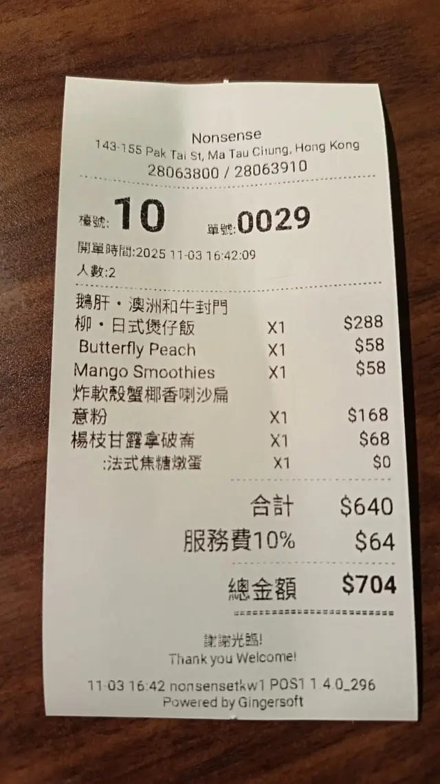Nonsense (土瓜湾) 网上订位享特别优惠并赚Rice Dollars 网址: https://s.openrice.com/QrLS0CW4A00 地址: 香港土瓜灣北帝街143-155號順輝大廈地下4號舖 电话: +852 28063800