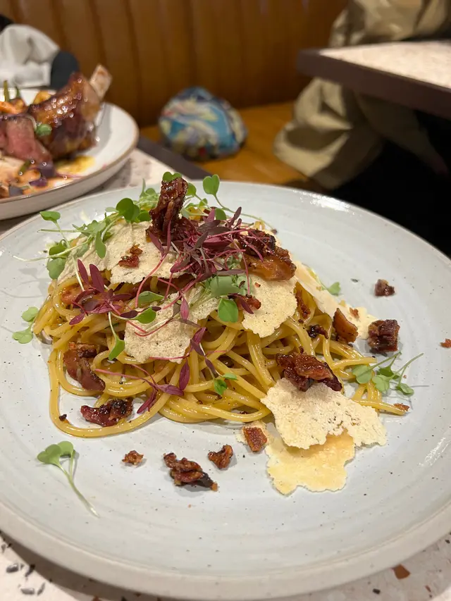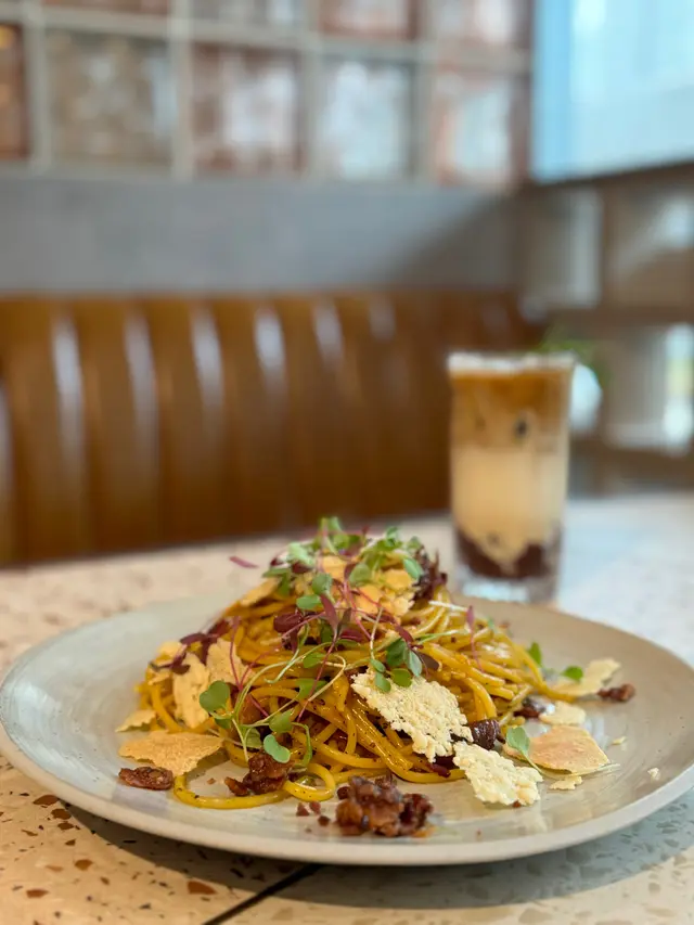🥰 十年前 “數記” 財政大臣 推介 觀塘工業大廈上樓小店 Nutmad, 一戰難忘. 餐廳幾年前搬番落地, 環境更大更闊落, 今日相約老友 “傻肥” 初訪新店.🥢 餐廳位於觀塘商廈二樓, 四方形樓面, 入門口左邊設半開放式咖啡吧枱, 直望單邊玻璃窗, 馬路景樓景, 引入自然光, 設多張 皮梳化卡位 及數張方枱, 帶點歐陸風格喎.🤗 餐牌簡單直接, 前菜, 主菜, 甜品, 飲品, 全部單點價錢, 不設套餐. 食物跟十年前差唔多, 鎮店菜式 包括卡邦尼意粉, 黑毛豬扒, 西多士.🐚 佛羅倫斯燉牛肚, $98. 服務員主動推介 “牛肚”, 我諗起當年喺 西班牙馬德里 食過嘅牛肚, 非常震撼, 所以決定一試. 據介紹, 牛肚味道偏鹹, 用微酸嘅湯汁襯托, 而且夠腍, 效果理想. 再追問之下, 烹廚方法原來嚟自佛羅倫斯, 哈哈.🥰 煙燻豬豬卡邦尼, $128. 煙肉, 蛋汁, 芝士, 完全包圍意粉, 煙肉有質感有厚度, 少似臘肉, 意粉有嚼口, 我唔鍾情卡邦尼, 但呢個版本確實出色!🐖 慢煮西班牙伊比利亞黑毛豬, $210. 豬扒面表煎燶, 配合咖啡香料, 味道香濃, 肉質肥瘦均勻, 而且肉汁鎖實, 唔會乾爭爭, 屬鎮店菜式.🥞 經典法式多士, 焦糖香蕉, 雪糕, $95. 聽講廚師要隔晚張方包浸浴蛋漿, 以往要早一日預訂. 相比普通西多士, 炸皮厚實, 咬落更富質感, 絕對係誠意之作.🧋 凍鮮奶咖啡, $42. 味道略淡, 過關吧!🫘 凍朱古力, $48. 賣相靚仔喎, 但係點解貴過咖啡?🤗 總結: Nutmad 位於觀塘工業區, 位置吊腳, 真係遠道慕名而來. 餐廳走精品路線, 餐牌簡單, 主攻兩三款鎮店菜式, 策略成功! 午市晚市同價, 午餐感覺冇咁抵食, 哈哈. 今餐最怪係倒轉嘅上菜序, 黑毛豬扒 (主菜), 卡邦尼意粉 (意粉), 牛肚 (前菜).…查看更多
