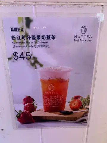 Today I passed by NUTTEA after holding a meeting at Devon House. As I was a bit thirsty and hungry, I ordered an earl grey chocolate cream tea. This signature drink is an award winner. Though it costs $48, it is worth trying. The tea is aromatic. With the rich and smooth chocolate nut cream, the tea tastes super yummy. It is also healthy and satisfying. A nuttea makes a day!…查看更多