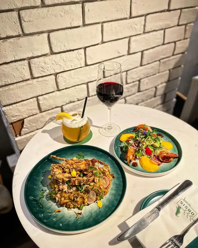 最近去咗尖沙咀依間「Oasis Bar & Grill」食晚飯,餐廳嘅Menu有提供好多款唔同菜式及飲品選擇,略嫌定價偏高。*此餐廳收取加一服務費。酥炸原隻軟殼蟹蟹肉蟹膏意大利飯(單點$228),軟殼蟹口感酥脆,內有蟹膏,食落有鮮味,意大利飯口感軟硬適中,表面裹滿蟹膏醬,味道鹹鮮,略嫌蟹肉比較細碎,配料包括有蘆筍、櫻桃蘿蔔、香葉,略嫌整體份量比較少。法式蟹肉龍蝦湯(單點$108),份量多,蟹肉味道鮮甜,食落啖啖肉,內有櫻桃蘿蔔,龍蝦湯口感Creamy,味道濃郁、帶點回甘。The Oasis(單點$148),採用伏特加、荔枝利口酒、玫瑰戈美、柑橘、喜馬拉雅山粉紅鹽、蝶豆花茶製作,味道酸甜帶鹹,飲落容易入口。…查看更多