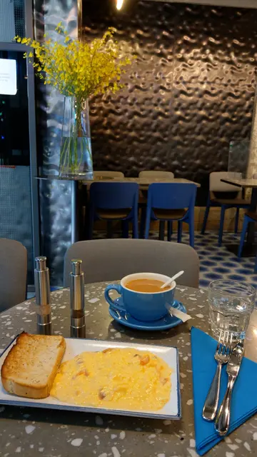 就连咖啡杯及餐纸也选用蓝色!当日星期六早上,间餐厅只得我一个客及可能系老板,两个人咋!