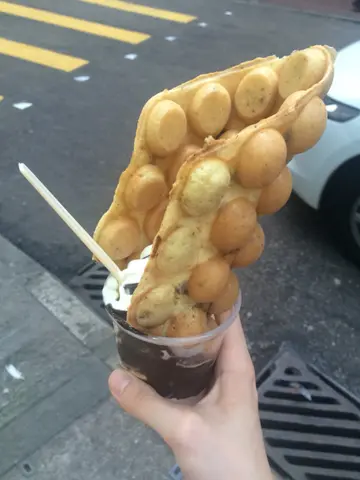 适逢有事要前往湾仔,便特地来试试传闻中的鸡蛋仔雪糕,店面很窄,差点看漏眼。当天天气尚有点凉意,加上久咳未愈,犹豫是否净点鸡蛋仔,但难得山长水远来到,加上未吃午饭,便点了Night Wolf。等了十分钟左右便出炉,新鲜焗制的鸡蛋仔脆口,但朱古力味略嫌不足,感觉也不是特别出色……雪糕方便口感浓厚,但奶味比较cha cha 稍为逊色,朱古力味也不及godiva 浓……底部的热情果冻很酸,或者舖上面会比较好……试过觉得味道一般,但视觉较果一流,除非顺道经过,否则应该没下次………查看更多