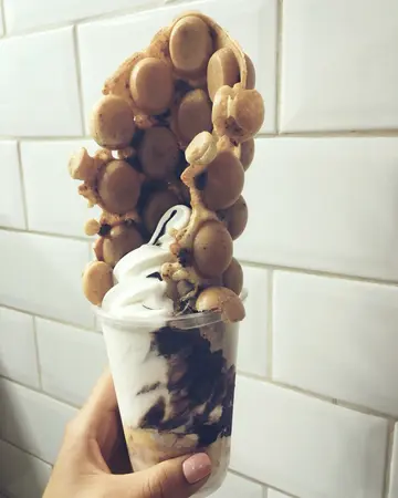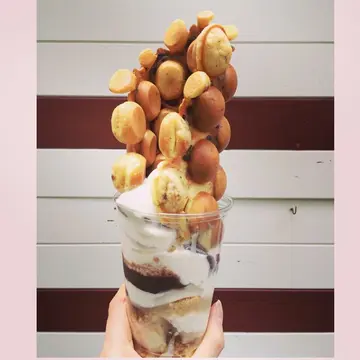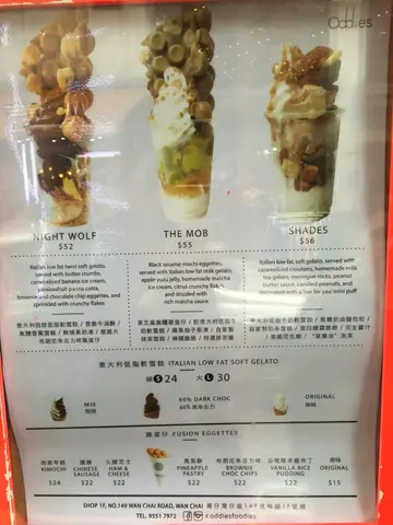 鸡蛋仔雪糕旺到外国终于有机会吃到最有保证的oddies!店面极小有点难找因为即做鸡蛋仔 人也不少所以也等了十来分钟先试他们的招牌!最常见的The night wolf朱古力软雪糕很浓郁是轻盈滑溜的类型配鸡蛋仔很不错!底下的热情果 Gelato有开胃作用唯一不足应该是鸡蛋仔没外面的专门店脆但因为是配料问题不大~这款反而带清香淡淡香味配奶味浓的软雪糕鸡蛋仔更有芝士馅料配搭很巧妙2种口味2种风格都很多元化没有想像中饱肚是新式雪糕相当好的选择…查看更多