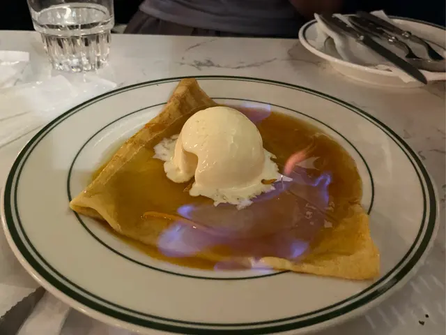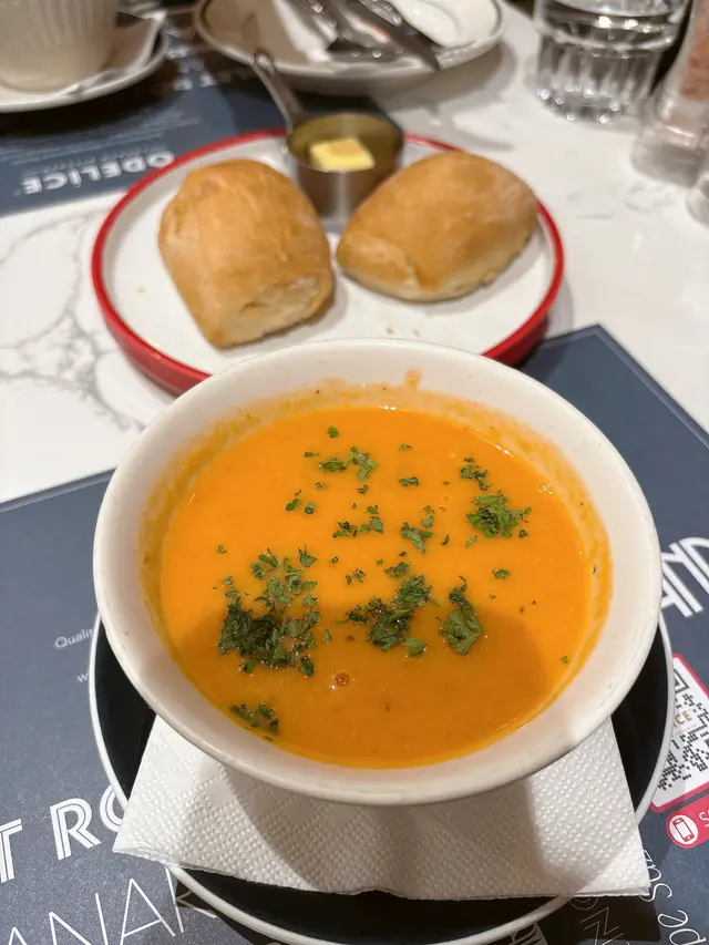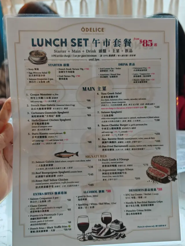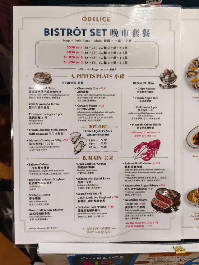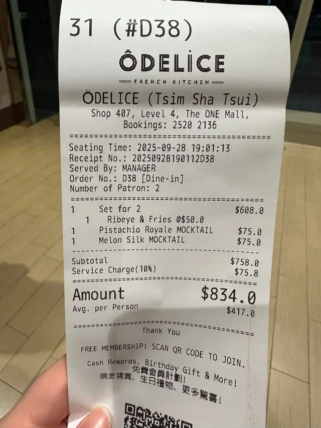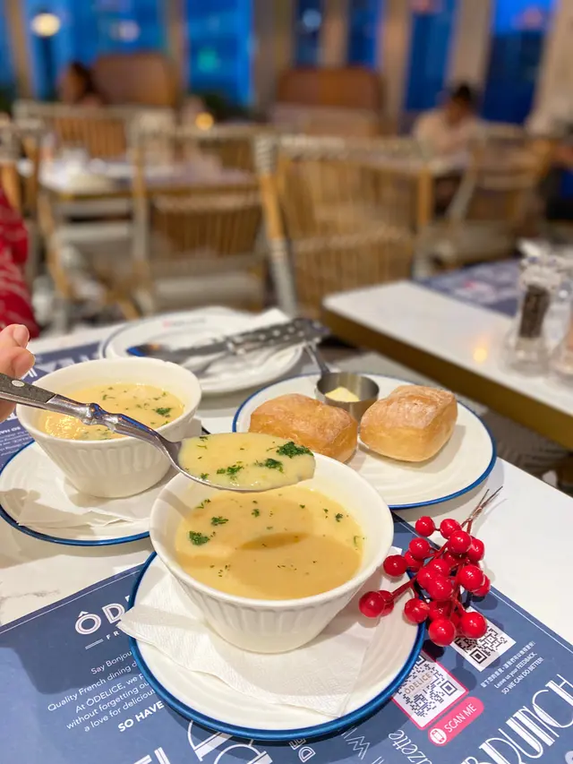 喺尖沙咀同朋友都想食Crêpe ,所以索性嚟Odelice!食埋晚飯,個晚市套餐仲包埋添!🔖Dinner Set 💲558 for two: 🍲《 蕃茄南瓜忌廉湯 》 x2 配 餐包餐包有焗熱,湯香濃唔會酸~ 我地揀咗 :🥑🦀《 Crab & Avocado Tartare 》 啖啖鮮甜蟹肉,好juicy加埋牛油果他他好fresh! 🐔《 Roast Half Yellow Chicken 》法式烤黃雞半隻燒好香,肉會偏乾,髀位會滑啲;配薯蓉同松露野菌醬汁提味~🥩《 Argentinian Angus Ribeye ➕💲50 》阿根廷安格斯肉眼牛扒做到要求嘅7成熟,唔韌有肉汁,配埋薯條同巴黎牛油汁~另外飲品有優惠🈶🥞《 Crêpe Suzette 》