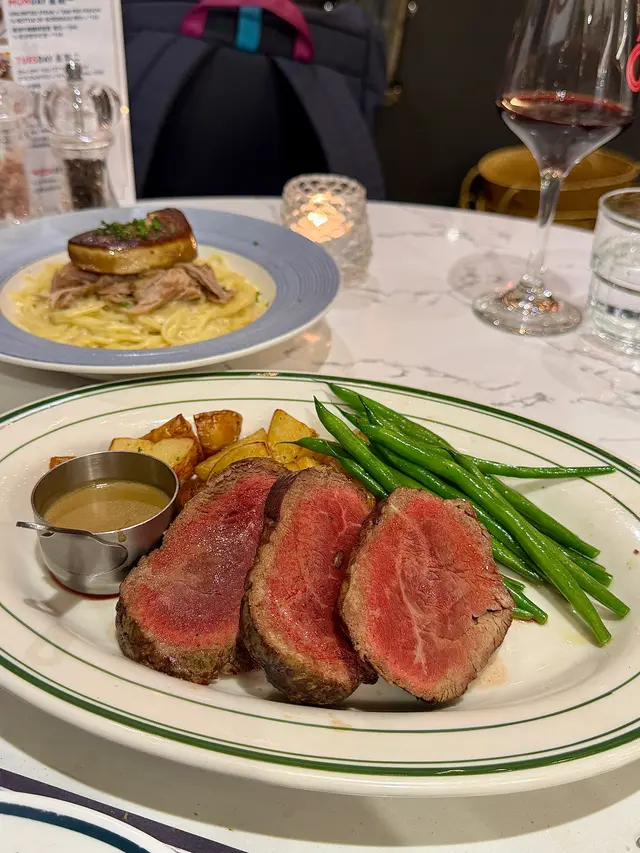沙田「ÔDELICE」餐厅环境法式氛围感满满,仲要唔同晚市套餐组合For不同人数,所以啱晒约会同朋友、屋企人过嚟聚餐。*此餐厅收取全单10%服务费。 晚市套餐二人餐(单点$538),法式烤黄鸡半只,表面铺满香料,鸡皮色泽金黄,口感香脆,鸡肉肉质嫩滑,食落好Juicy、带有鸡油油脂香味,配以松露野菌酱汁食用,味道浓郁,薯蓉口感幼滑。红酒炖牛面颊意粉(跟餐$0),表面铺有香葱,牛面颊炖得好软嫩、带有胶原蛋白,食落好入味,意粉容易挂汁,配料包括有烟肉、红萝卜、独子蒜。香煎带子2件(跟餐$0),带子经过香煎之后,外层带有焦糖化,肉质一丝丝,味道鲜甜,配以青豆薄荷蓉、黑醋、炸干葱食用,味道清新。法国田螺6件(跟餐$0),田螺肉质弹牙、不韧,食落有鲜味,配以香草蒜味牛油食用,食落好香口,芝士薯蓉味道咸香。2碗餐汤(跟餐$0),番茄甘笋忌廉汤,表面铺有面包多士粒、番荽,口感Creamy,加入鲜磨番茄、甘笋,饮落带有颗粒感,味道酸甜。2客餐包(跟餐$0),软欧包多士,口感外香脆内软硬适中,配以海盐牛油食用,味道更佳。Strawberry Cucumber Cooler (单点$65),采用士多啤梨果茸、青瓜、柠檬汁、梳打水,饮落好清爽。Iced Matcha Apple Zest (单点$65),采用抹茶、青苹果果蓉、柠檬汁、蜜糖制作,茶香、果香Balance,再加入蜜糖中和青苹果果蓉、柠檬汁的酸度,饮落意想不到的搭配。…Read More