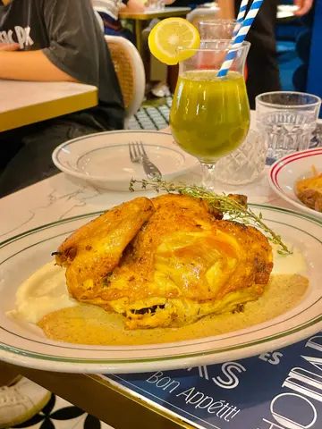 沙田「ÔDELICE」餐厅环境法式氛围感满满,仲要唔同晚市套餐组合For不同人数,所以啱晒约会同朋友、屋企人过嚟聚餐。*此餐厅收取全单10%服务费。 晚市套餐二人餐(单点$538),法式烤黄鸡半只,表面铺满香料,鸡皮色泽金黄,口感香脆,鸡肉肉质嫩滑,食落好Juicy、带有鸡油油脂香味,配以松露野菌酱汁食用,味道浓郁,薯蓉口感幼滑。红酒炖牛面颊意粉(跟餐$0),表面铺有香葱,牛面颊炖得好软嫩、带有胶原蛋白,食落好入味,意粉容易挂汁,配料包括有烟肉、红萝卜、独子蒜。香煎带子2件(跟餐$0),带子经过香煎之后,外层带有焦糖化,肉质一丝丝,味道鲜甜,配以青豆薄荷蓉、黑醋、炸干葱食用,味道清新。法国田螺6件(跟餐$0),田螺肉质弹牙、不韧,食落有鲜味,配以香草蒜味牛油食用,食落好香口,芝士薯蓉味道咸香。2碗餐汤(跟餐$0),番茄甘笋忌廉汤,表面铺有面包多士粒、番荽,口感Creamy,加入鲜磨番茄、甘笋,饮落带有颗粒感,味道酸甜。2客餐包(跟餐$0),软欧包多士,口感外香脆内软硬适中,配以海盐牛油食用,味道更佳。Strawberry Cucumber Cooler (单点$65),采用士多啤梨果茸、青瓜、柠檬汁、梳打水,饮落好清爽。Iced Matcha Apple Zest (单点$65),采用抹茶、青苹果果蓉、柠檬汁、蜜糖制作,茶香、果香Balance,再加入蜜糖中和青苹果果蓉、柠檬汁的酸度,饮落意想不到的搭配。…查看更多