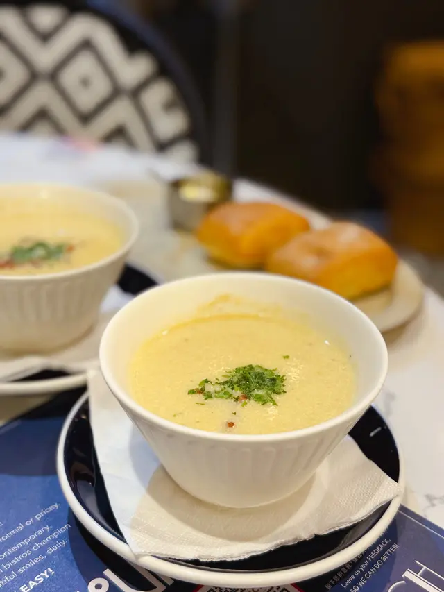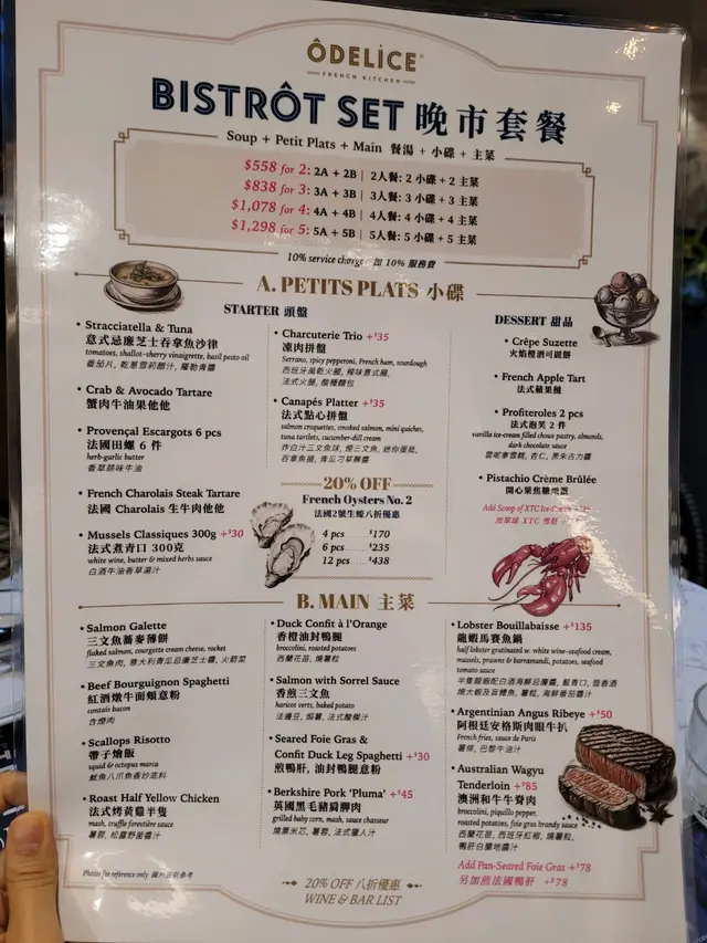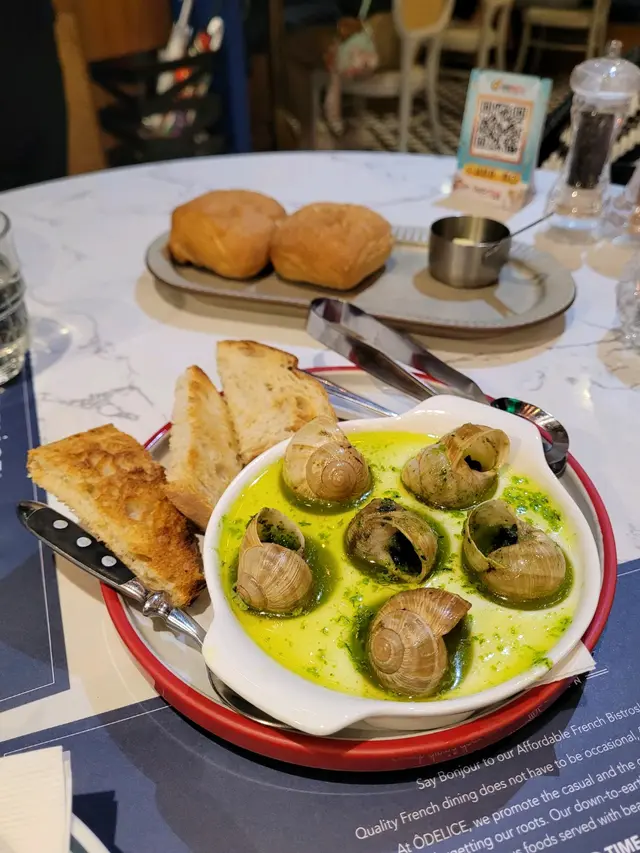 沙田「ÔDELICE」餐廳環境法式氛圍感滿滿,仲要唔同晚市套餐組合For不同人數,所以啱曬約會同朋友、屋企人過嚟聚餐。*此餐廳收取全單10%服務費。 晚市套餐二人餐(單點$538),法式烤黃雞半隻,表面鋪滿香料,雞皮色澤金黃,口感香脆,雞肉肉質嫩滑,食落好Juicy、帶有雞油油脂香味,配以松露野菌醬汁食用,味道濃郁,薯蓉口感幼滑。紅酒燉牛面頰意粉(跟餐$0),表面鋪有香蔥,牛面頰燉得好軟嫩、帶有膠原蛋白,食落好入味,意粉容易掛汁,配料包括有煙肉、紅蘿蔔、獨子蒜。香煎帶子2件(跟餐$0),帶子經過香煎之後,外層帶有焦糖化,肉質一絲絲,味道鮮甜,配以青豆薄荷蓉、黑醋、炸乾蔥食用,味道清新。法國田螺6件(跟餐$0),田螺肉質彈牙、不韌,食落有鮮味,配以香草蒜味牛油食用,食落好香口,芝士薯蓉味道鹹香。2碗餐湯(跟餐$0),番茄甘筍忌廉湯,表面鋪有麵包多士粒、番荽,口感Creamy,加入鮮磨番茄、甘筍,飲落帶有顆粒感,味道酸甜。2客餐包(跟餐$0),軟歐包多士,口感外香脆內軟硬適中,配以海鹽牛油食用,味道更佳。Strawberry Cucumber Cooler (單點$65),採用士多啤梨果茸、青瓜、檸檬汁、梳打水,飲落好清爽。Iced Matcha Apple Zest (單點$65),採用抹茶、青蘋果果蓉、檸檬汁、蜜糖製作,茶香、果香Balance,再加入蜜糖中和青蘋果果蓉、檸檬汁的酸度,飲落意想不到的搭配。…查看更多