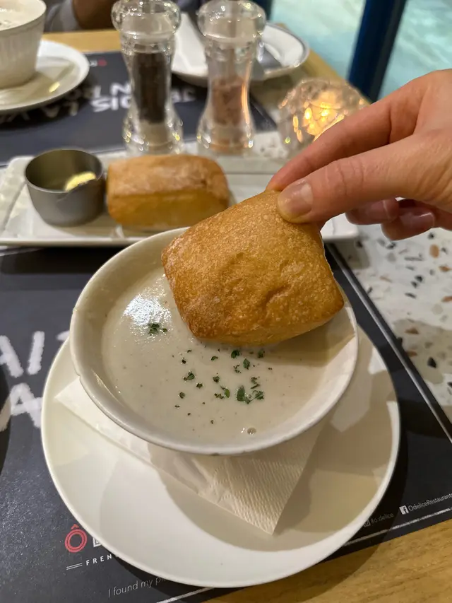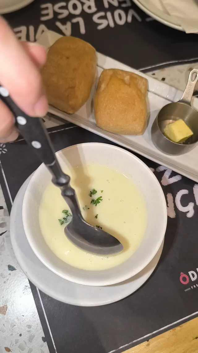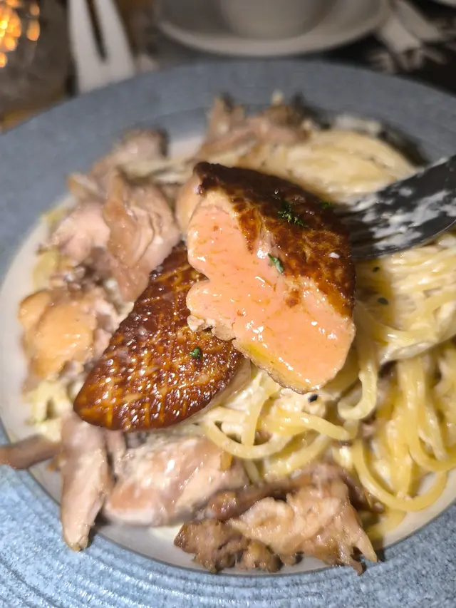 💡法國 Charolais 生牛肉他他套餐前菜我哋揀咗生牛肉他他,第一次試嘅朋友都唔洗驚!呢度用嘅係法國Charolais牛,肉味本身就好鮮甜,完全冇腥味。簡單用洋蔥、酸瓜等調味後,味道更有層次。將牛肉他他搽喺烘到香脆嘅法包上面一齊食,口感豐富又惹味,好快就清晒成碟!💡英國黑毛豬肩胛肉 (燒粟米芯、薯蓉、法式獵人汁)主菜揀咗黑毛豬肩胛肉,份量十足!豬肉煎到外層焦香,但切開肉質依然保持到軟嫩多汁,完全唔會乾柴。配埋香滑嘅薯蓉同惹味嘅法式獵人汁一齊食,味道層次即刻提升!💡香煎三文魚 (法邊豆、焗薯、法式酸模汁)另一道主菜係香煎三文魚,魚皮煎得非常香脆,三文魚肉質肥美,魚油香氣四溢。旁邊嘅法式酸模汁帶點微酸,正好平衡返三文魚嘅油膩感,成個配搭好清新。💡法式泡芙 (雲呢拿雪糕、杏仁、黑朱古力醬)套餐仲包埋甜品!法式泡芙夾住冰凍嘅雲呢拿雪糕,淋上濃郁嘅黑朱古力醬,再灑上香脆杏仁片。一啖食落去,又凍又熱,又軟又脆,口感超豐富,為呢餐畫上完美句號!💡Lychee Martini叫咗杯Lychee Martini,荔枝嘅清甜完美融入酒香,入口順滑,甜度啱啱好,充滿果香,好適合女仔飲。💡開心果沙冰估唔到開心果味可以咁香濃!沙冰打得好幼滑,堅果味十足,甜而不膩,好有驚喜。…查看更多