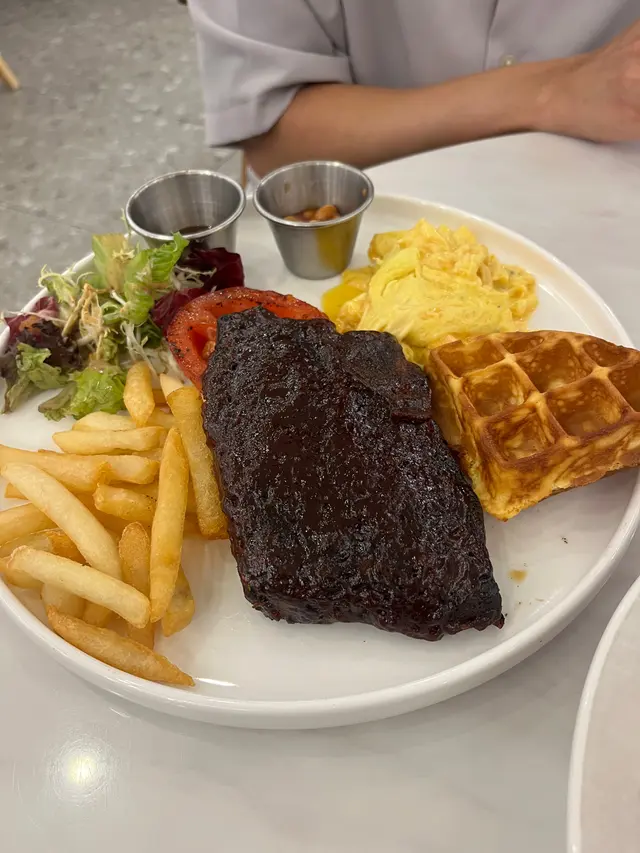 環境衛生不佳,兒童餐具黐笠笠, 交叉膠都有咬痕也不更換。座位餐枱好污糟,上手剩下的植物也沒有清理好。焗豬扒飯好難食,酸味好重,豬扒好硬。豬肋骨太鹹,八角味勁重,超級難食。 每一樣嘢食都好難食,一係太甜,一係太鹹。以為甜品會好啲,點知連甜品都可以整得難食!完全冇人收野,落餐的時候啲嘢亂咁擺,爭啲倒瀉嘢仲整到人。 員工好似趕住收工咁,未食晒啲嘢食就話收,明明冇人等,一路食一路吹趕交枱。完全不推介不建議再嚟。…查看更多