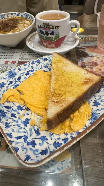 早上去了葵涌OK 冰室,点了一套充满情怀的早餐,番茄浓汤加餐肉粒通粉、沙嗲牛通 + 牛奶炒蛋 + 牛油多士,然后杯香浓奶茶收尾,相当满足。通粉嫩而不烂,番茄浓汤配餐肉粒的点醋香,合理地接着粉咸,汤意味满分!炒蛋无言很精,合通通的牛奶香。牛油多士居然没有想像中的腻,反而是固定吃法之一。现场环境亮亮清洁,有内周和风格为先,服务人员表现也是常识分尾。总算是吃得平价,还可以等待心情好开始的一天,该打星我会给四五个星!