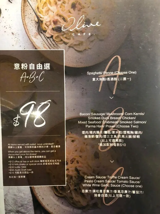 好久好久沒吃牛扒,近來都想起石燒牛扒,但只想起尖沙咀、旺角和深水埗才有,又懶得去吃,而且餐廳環境多數十分人多擠迫,又多油煙。朋友突然說起荃灣專吃石板燒的Olive cafe 在北角和富商場開了分店,實在太好!一行二人走到了和富,在戶外已經看到餐廳,原來北角分店更大更好有戶外座位。但天氣炎熱而且石板燒,我們還是坐室內的。晚餐不收加一!!我們專登選擇坐在知在取餐區的旁邊,哈哈!因為晚餐都有無限量自助添加沙律、餐湯和日本白飯!對於我們兩個大男孩來講,實在開心。湯有《忌廉蜆肉白湯》,入口creamy夠熱,又多蜆肉。 沙律菜加上麻醬真是會令人停不了口,我整整吃了四碗!而日本白飯正是我最愛的珍珠米,彈牙有口感,我足足吃了三碗!我很想吃牛肉所以點了一份G.餐 《U.S. thick skirt 美國封門柳 $158/200g》(另外有150 g的選擇) - 封門柳中間粉嫩,燒到6-7成吃最好味,加上醬汁更惹味,醬汁加上白飯又好吃。不過有點咬口,不是人人喜歡。如果想入口多點油份的可選日本和牛。跟餐配熱飲 +$12 - 《熱奶茶》。我朋友卻被這裏的薄餅吸引,點了一個N. 餐《Margaria pizza $108》- 就是茄醬和芝士的薄餅,薄餅薄身不會膩,餅邊脆口。跟餐配特飲+$18 - 《黑牛》,即是可樂加朱古力雪糕,有懷舊感,好喝又有雪糕當甜品。這裏的座位比其他一般的石燒餐廳舒服得多了!寬躺又沒有大陣的油煙味,不擠迫可以舒舒服服的享受一頓石燒晚餐,而且對於大胃口的男生來說實在抵食!查看更多
