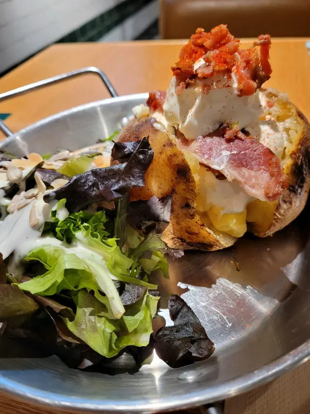 位於九龍灣的Oliver’s Super Sandwiches主打歐陸輕食,這次試的是他們的煙肉酸忌廉焗薯配沙律。焗薯外層微脆,內裡綿密,配上香濃酸忌廉和煙肉碎,味道鹹香中帶點酸香,口感豐富。沙律則以新鮮蔬菜為主,清爽解膩,與焗薯形成平衡,是一款簡單但有層次的輕食選擇。環境:店面整潔明亮,裝潢簡約,氣氛輕鬆。價格:約$60至$70,屬中價位,與質素相符。食物質素:焗薯香口不膩,沙律新鮮,出品穩定。食物種類:提供多款三文治、沙律、焗薯及意粉,選擇多元。如果你喜歡香口焗薯配清新沙律,這款組合值得一試。…查看更多