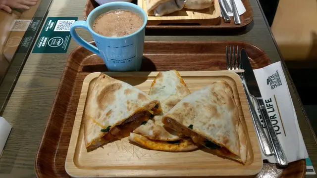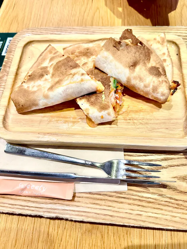 今個假日同老婆出街食咗個普通嘅午餐。墨西哥餡餅個餅皮香脆,燒雞同甜椒夠晒夠味,芝士拉絲咁溶嘅口感幾好。熱濃縮咖啡味道濃烈,啱晒中和餡餅嘅香甜。肉醬意粉係普通水準,肉醬味道算濃郁,配上港式伯爵奶茶,奶茶香甜帶茶味,令整體味道唔會太油膩,幾配。芝士肉醬薯條炸得剛好,薯條外脆內軟,芝士同肉醬味道融合不錯,係一個唔錯嘅配搭。新奧爾良雞翼外皮香脆,醬汁微辣帶甜,肉汁鎖得好,食落幾過癮。整體嚟講,價錢合理,環境輕鬆。適合輕鬆嘅周末午飯簡餐,食得舒服最緊要。…查看更多