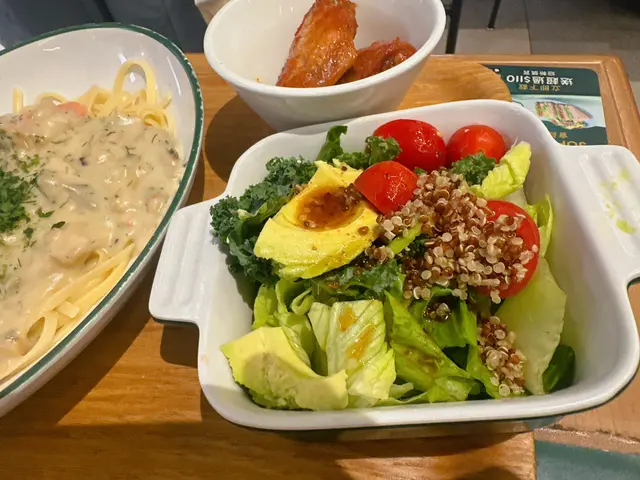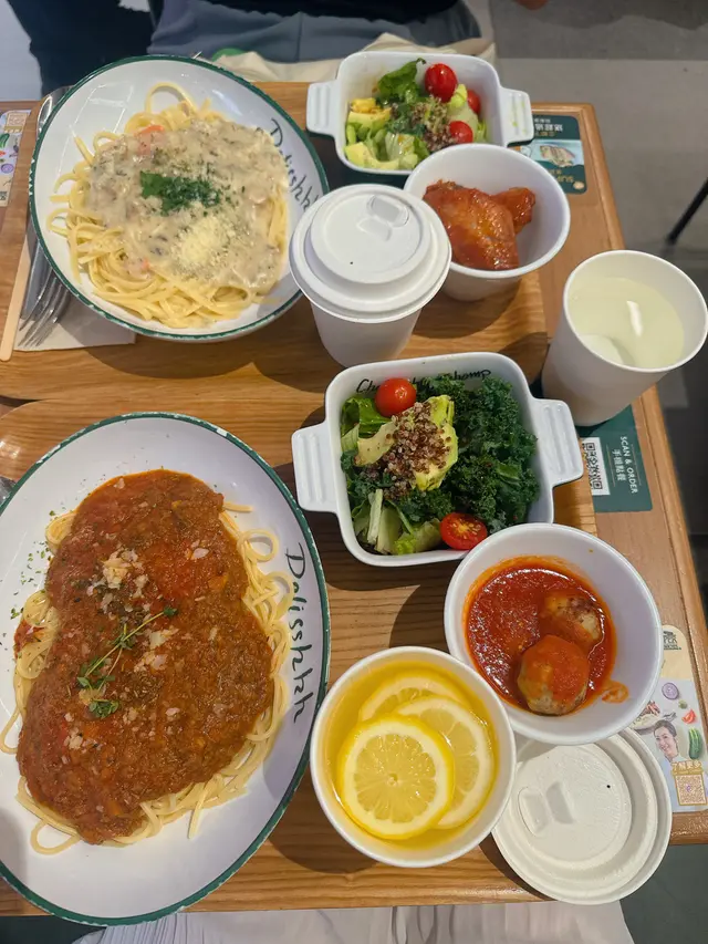 本身想過嚟食焗薯去到又突然間好肚餓,所以叫咗意粉套餐呢間店可以單點意粉或者焗薯然後加配做套餐做套餐的好處是有簡單飲品之外,重要是最多可以額外加配兩個小食!普遍小食只係$15左右 ,整體嚟講平均消費一個套餐$100今次食肉醬意粉,白汁三文魚蜆肉意粉,兩隻雞翼,三粒肉丸,牛油果沙律單看份量已經值一個西餐的價錢意粉係超級大碟三文魚同蜆肉都好足料唔會得兩三嚿白汁唔會太漏 味道啱啱好沙律好似只係加配$9 健康開胃,牛油果都好大嚿雞翼醬汁配搭都好好味 小小酸酸甜甜勁滿足 滿滿的肉醬意粉上面已經配搭芝士粉意粉口感適中,食意粉最重要就係多汁多肉醬撈得勻先好食。所以好滿意份量同埋味道唔會覺得鹹再配埋少少蕃茄味,好快就食晒肉丸有三粒大大粒 佢啲汁有啲似係肉醬意粉嗰種味 同埋好彈牙材料十足整體嚟講都好推介食呢間 性價比十足查看更多