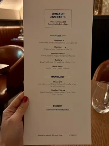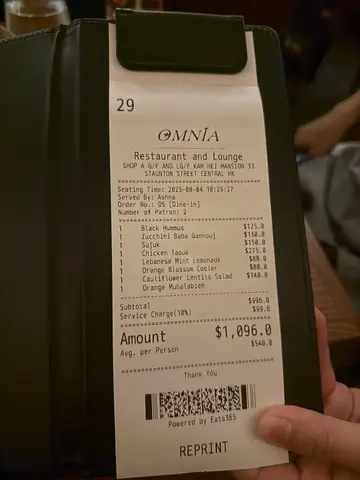 位于苏豪区嘅🌟Omnia🌟,系一家刚开业不久嘅🇱🇧黎巴嫩餐厅!装修格调高雅✨,同时带异国风情🇱🇧,嚟光顾嘅多数都系外籍客人👍🏻!🟡Hummus中东菜必备嘅鹰嘴豆蓉,好幼滑,又有少少甜,净食式者配Pita Bread都好好!⚪Labneh软身绵滑嘅芝士乳酪酱,酸酸哋嘅口味,同Pita Bread好夹!🥗Cauliflower Lentils Salad以椰菜花同埋羽衣甘蓝为主嘅沙律,配搭微酸清爽嘅酱汁,真系好开胃!🍢Chicken Taouk黎巴嫩Style嘅鸡肉串烧,鸡肉仍保持嫩身有肉汁,火候控制出色!配搭蒜香酱汁,更见惹味!🐓Sawda Djej黎巴嫩式炒鸡肝,加少少柠檬汁,可以激发香味!钟意食猪润嘅朋友必试!🍊Orange Muhalabieh阿拉伯风格嘅牛奶布甸,带橙香,甜度适中!🍸Lebanese Spiced Margarita加入黎巴嫩香料嘅Margarita,同黎巴嫩菜式劲夹!🍹Pomegranate Spritzer以石榴为主轴嘅Mocktail,酸酸哋几清新!…查看更多