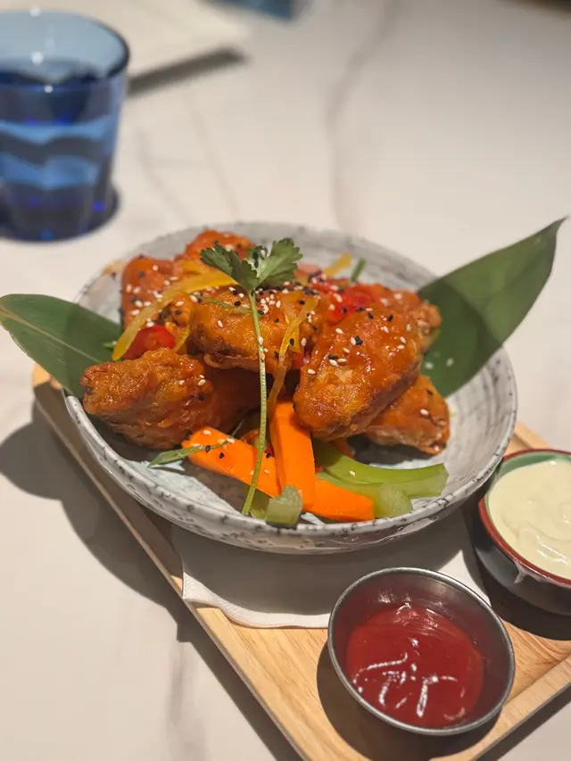 第一次過嚟試呢一間餐廳餐廳職員安排咗我哋三個坐上去梳化位座位寬敞舒適雞尾酒酒精濃度好夠唔會太甜另外韓式雞翼味道好似水牛城雞翼咁夠脆夠辣,好好味主菜,估唔到個羊肉咁好食一啲都冇羊臊味食落仲要有啲似牛扒連埋啲薯蓉一齊食口感好豐富另外仲叫咗和牛漢堡牛肉好有肉汁粗身薯條配咗個醬汁都好好味有啲似海鮮千島醬咁最後仲嗌咗個煎魚呢個嘅醬汁就偏甜食唔到辣嘅人一定鍾意呢度冇+1服務費但係服務員嘅服務就好到加零一👍👍👍超級推介…查看更多
