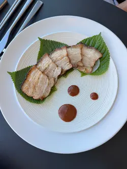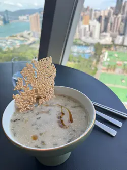 ꧁平时吃韩国菜很多,反而也是第一次在香港吃精致韩国餐,这里环境可以远望铜锣湾景观,位于楼层的28楼,装修精致优雅。꧁午市特设套餐,可以选择三或四道菜,头盘先来的是韩国传统粥,加入韩国当造特色蔬浆、韩牛、新鲜蚬肉、及自家大米,以15小时以上烹调传统粥,很入味。第二道菜,海鲜湑汤配烤釜山饱鱼,精致的摆盘,鲍鱼就在气泡中,够特式。꧁第三道菜是澳州和牛,三件切开了的澳洲和牛,不但没有流失牛肉的Juicy味道,加入特制酱汁,和牛脂肪与肉的比例适中,入口溶化。另一主菜。慢煮济州黑毛猪五花,以36小时慢煮的黑毛猪,跟紫苏叶和酱汁夹在一起吃,口感十足。꧁第四道菜是来自釜山自家农场制的白米,制作成清简的白饭,但配以48小时鳗鱼汤和特色韩国传统配菜,既吃到白饭的香和软熟,又可以品尝不同韩国小吃,特别喜欢生墨鱼做法,而大甜美的黑豆也不错。꧁最后以韩式特色小吃香脆蘑菇和餐饮作为终结。整个韩式fine dining 体验满足,好好享受一场特别午餐。…查看更多