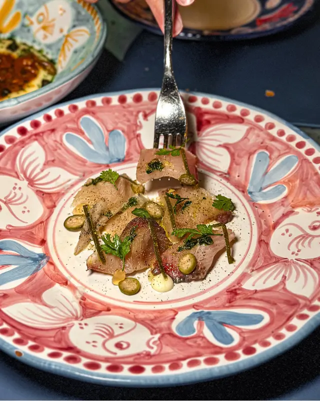 Carpaccio di Tonno:日本吞拿魚薄切、日本小柑橘、芹菜、肉腸粒