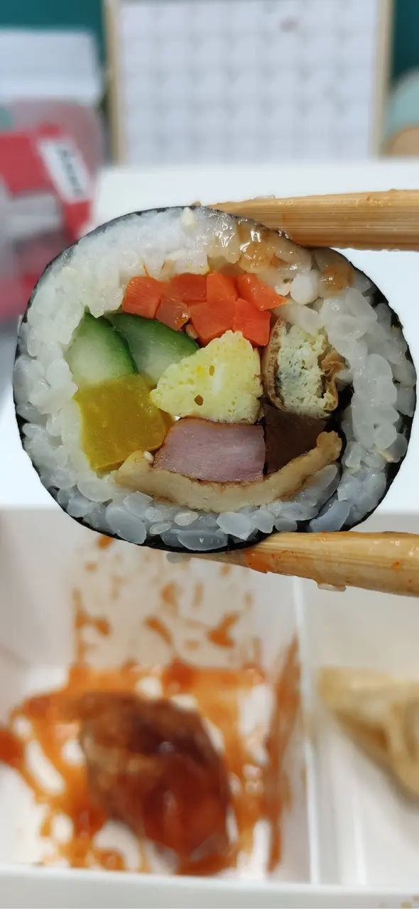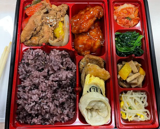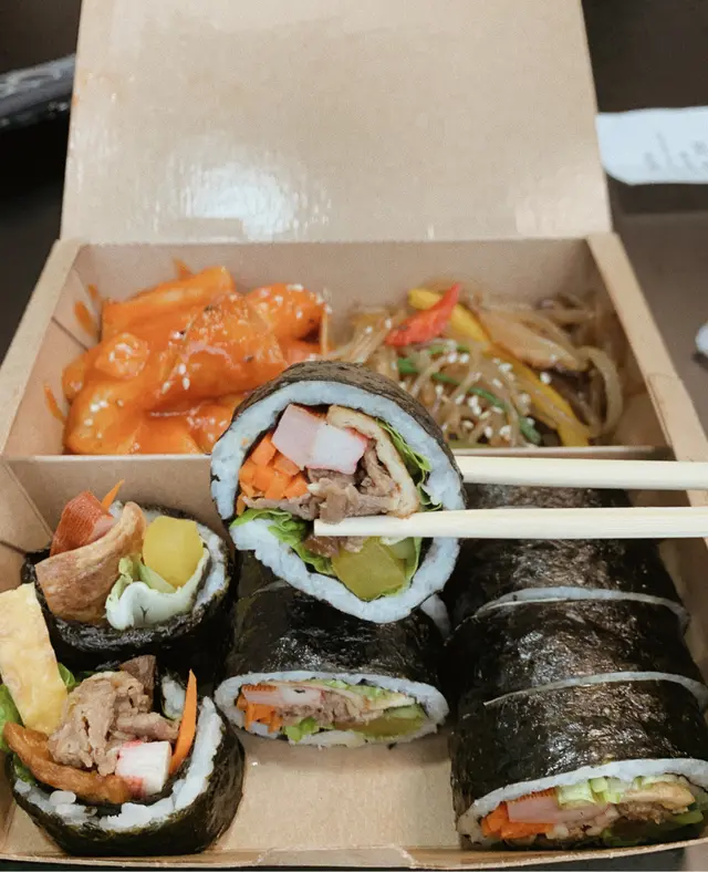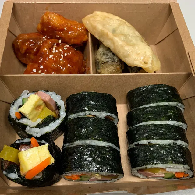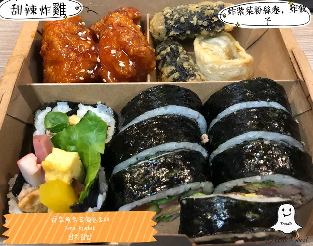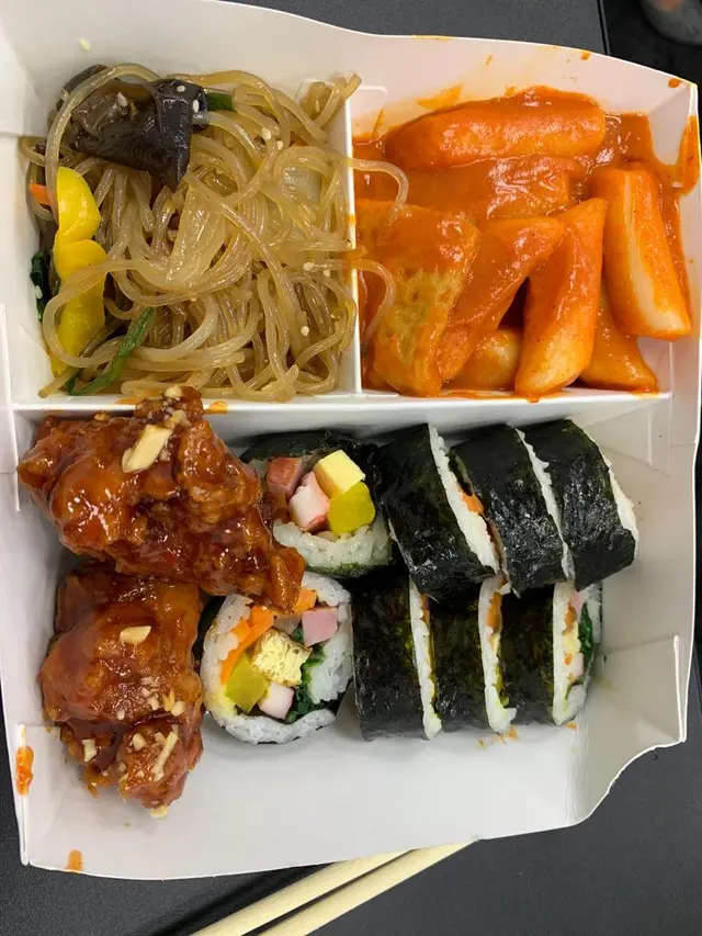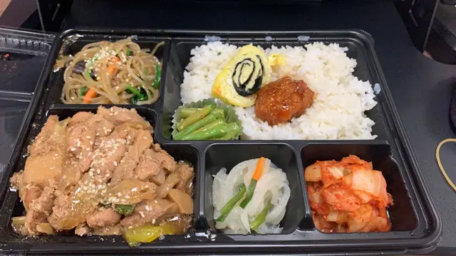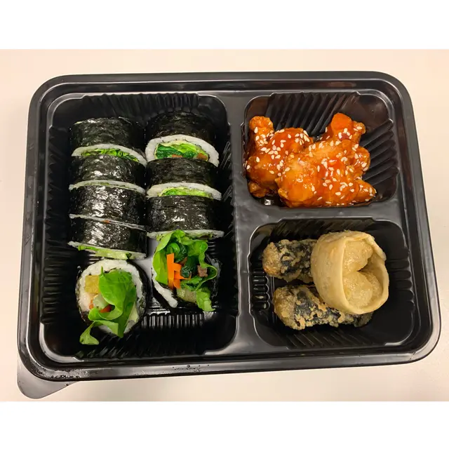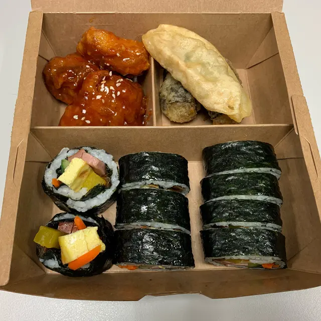 這間韓國店舖店員大部分是韓國人,從他們自己人之間會用韓文溝通就知道,令初次點餐的我有點不自在,但同事話他們懂得英文和少量廣東話,要聽顧客點餐絕對無問題。我叫了原味飯卷便當,故名思義便當內有一條原味韓式飯卷,配有炸雞塊、粉絲炸物以及類似紫菜天婦羅的東西。味道不錯,只是炸雞塊偏硬了一點。同事要了L8 烤牛肉一品便當,價錢算是全餐牌中最貴,但配料和食材亦是最豐富,有點似實際韓國餐桌上的前菜,選擇豐富,絕對值得一試。…查看更多