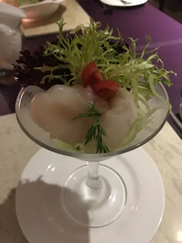 是日中秋佳节,朕既贴身随从为朕安排左一顿-法兰西中秋大餐。既然系安排好,朕系连餐牌都唔使望既,全部交哂俾佢。先上枱既系自制面包+黑松露牛油,面包外层香脆,内层松软,加埋-黑松露牛油既香味,不俗!然后系水果沙律,用上新鲜既奇异果,橙同士多卑利同埋沙律菜,再加埋黑醋,最后当然又系有黑松露吊一吊味啦,几样生果都好鲜甜,加埋沙菜既清新,仲有黑醋既酸味,仲有黑松露既香,非常开胃既沙律!跟住系《香煎法国鸭胸配香橙汁》,鸭胸煎到外脆内嫩,加埋鲜橙肉同埋汁,鸭胸咬落松软,又有鸭既油香,再加埋香橙既酸甜,非常开胃!仲有系《石锅活龙虾浓汤》有半只活龙虾做汤料,龙虾活唔活我唔知,不过就一定好鲜味,个汤有清甜既龙虾鲜味,店小二提醒朕,先尝一尝鲜味既龙虾汤,然后再张龙虾头既虾膏同个汤混和一起,再尝一尝,即刻浓味大升级,变身成超浓龙虾加虾膏味既龙虾浓汤!大赞!!!《煎北海道带子刺身配黑鱼籽》佢地用带子刺身黎煎,本身刺身肉币比较弹牙,佢地只系张表面煎到金黄香脆,内里依然嫩滑,加埋黑鱼籽既鲜味,Perfect Match!《青柠雪芭》,大胆朕都未食主菜,咁快上甜品!店小二又再出黎解释,青柠雪芭甜甜酸酸,入口青新,系在上主菜前用黎清一清味觉,令到食主菜时可以食出真味!终于上主菜,《黑松露温泉蛋大菇藜麦》,无错又系黑松露,黑松露加埋温泉蛋同啲藜麦搅混,一口食落有黑松露既香味,又有温泉蛋既滑同蛋香,再加埋藜麦既特别口感,另外大菇煮完之后都仲充满水份。廷特别的菜式。《澳洲顶级牛柳配法国鹅肝》,顶级牛柳朕要五成熟,表面煎香,内里Juicy,肉质细嫩,加埋煎到金黄既鹅肝,咬落香滑,再配埋黑松露汁,无错系黑松露汁,大厨简直对黑松露情有独钟,三者混和一起,大赞!!!最后《法式朱古力炖蛋》,用左香浓既朱古力,食落除左有香浓既朱古力味之外,仲有细滑既口感,用呢个甜品作完美既终结!-----完-----Read More