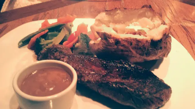 今次去咗間名氣唔錯嘅扒房試下佢地嘅招牌,實話實說,食完真係有啲心花怒放🌸!肉眼扒7成熟,入口外層微焦,裏頭卻嫩得嚟個汁液四溢,相當juicy,咬落去肉香四溢,簡直係炸裂。但係,同桌的西冷就冇咁好彩,好似少少過火咁,食到尾段先返晒正常,幸好佢最後都過得去,唔至於荒咗一餐。至於啲芝士薯條,講真,真係好到爆炸💥!薯條金黄香脆,芝士拉絲得嚟唔會過於膩口,啖啖都令人回味無窮,不過份量確實大到搞到我哋兩個食唔晒。食完扒同薯條,本來已經七分飽,但焗薯太吸引,唔食又覺得對不住自己,總之就係甜頭收場,但唯獨洋蔥湯就實在沒能力碰到,下次一定要記住,眼唔可以咁大個肚呀!整體黎講,扒房嘅食物質素真係有保証,每樣嘢都做得夾心意,啱啱好。係,或者有啲小瑕疵,但總體感覺就係開心同滿足。下次再嚟,我一定會再試下其他嘢,相信一定唔會令我失望!👍…查看更多