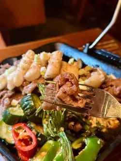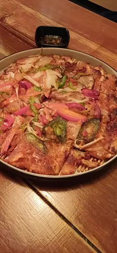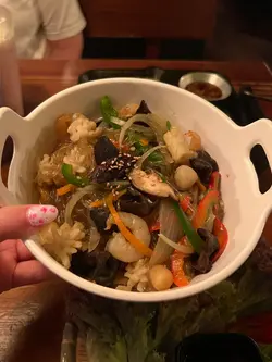 约朋友在尖沙咀午餐, 竟然有一个意外的惊喜。今天选了吃韩国菜, 在尖沙咀厚福街8H号17楼 Outdark韩国餐厅,这里装修很特别, 门口的装饰墙上全部是幸运锁🔒,大部分都写上韩文, 应该都是一些吉祥祝福的话语 。餐厅开始有万圣节装饰, 很特别很有气氛 ,还设有万圣节抽奖。开始点餐,我们两个不约而同地选了一个韩式炖牛小排锅 ,一个泡菜煎饼 ,然后每人叫了一杯饮品 ,店员贴心地告诉我们 ,两个菜品已经很足够, 果然上菜一看, 非常之足料大份, 卖相吸引, 见到就流口水了。 一个泡菜煎饼煎得香香软软的 ,味道酸香软糯,开胃又健康, 蔬菜同面粉的比例很协调, 还有一碟辣汁配合。 💥💥今日焦点是韩式炖牛小排锅,🐮🐮 第一次吃 ,完全想不到的惊喜效果, 熟牛小排切薄片, 整齐排列在锅上, 旁边配有各色菇菌蔬菜粉条,🍄🥬🍄🥬 有芽菜 ,平菇,金针菇 ,黄芽白, 韭菜 ,当然仲有爽滑的粉条 ,汤底是用牛骨新鲜熬制,鲜味无比 ,用火炉将汤底煮滚, 菇菌蔬菜牛肉的味道冉冉升起, 我们急不及待地开吃 ,牛小排是香软 鲜味 ,完全是我们两个牛摩王的至爱, 不得不说这样吃, 真是牛肉中的极品。 配上清凉的饮品, 更是妙不可言。👍👍…查看更多