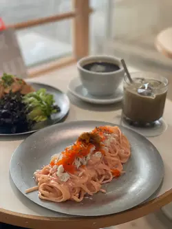 Bookmark左好耐,喺黑雨过后就即刻去试,先唔洗排队。小店只有16个位,所以不一回已经Full House。门外设有两个座位好chill 𓐠佢最出名系特色咖啡,不过都系试咗佢Basic咖啡先,mocha,狗狗拉花好靓好有心机!仲系用Nutty咖啡豆,my cup of coffee,咖啡同奶非常之平衡。而食物方面亦有惊喜,试咗啲平时少有嘅菜式:⬘和风又烧黑蒜油炒滑蛋酸种吐司 $86用上日式叉烧,中日fusion,佢嘅叉烧系薄而腍滑,炒蛋系加入咗黑蒜油,好惹味,有惊喜!必试~⬘煎磨菇菠菜蕃茄酱扁意粉 $88由于朋友唔食蟹,所以就是呢一个素食意粉,卖相都好吸引,估唔到味道都好清新,两篇鸡髀菇有咬口,加上和风脆脆,好味!⬘焦糖巴斯克芝士蛋糕 $68是日冇开心果味,但呢一个有脆脆焦糖面,好香。份量都几大,佢嘅芝士味又唔会太漏,但又够滑,㶶面够香~Mocha $52♥ℒᵒᵛᵉ…查看更多