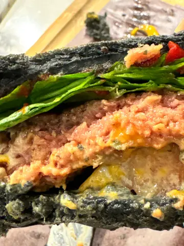 今次来到湾仔一间主打健康打卡的素食Cafe小店,店舖摆放了各种盆景植物,入到店时有心情开朗、心旷神怡的感觉,彷佛置身都市中的小森林。🌳🪴💚👭晚上的主食套餐会跟沙律、餐汤、餐饮及一份小食,摆盘精致,同时沙律选了芒果、菠萝、红色火龙果和沙律菜,组合到色彩缤纷,进食时也会胃口大增。🥗🍲🥟🍹✨ 黑椒天贝汉堡($178),以发酵大豆制成的「天贝」为主角,口感扎实有嚼劲,煎至外香内软,加入浓郁黑椒酱提味。口感也有点像炸芋头的味道,咸香过瘾,初尝这款天贝汉堡几有惊喜的味道体验。🍔🌿✨ 香草南瓜意大利饭配盐酥鸡($178),南瓜泥融入在意大利饭当中,色泽金黄、口感绵密creamy。几有亮点的是素食盐酥鸡,外皮炸得外酥内嫩,咬下有鸡肉般的纤维感,几有惊喜。🎃🍗✨ 朱古力香蕉西多士配云呢拿雪糕($68),一片片砖块形状的西多士淋上了朱古力酱,在加入了新鲜香蕉和简单的云呢拿雪糕,冷热交融,为这顿健康晚餐作出了完美作结。🍫🥠🍨…查看更多