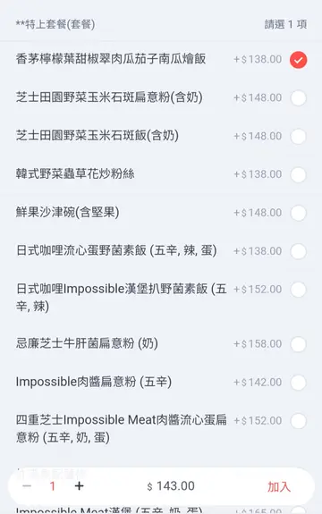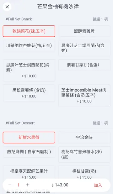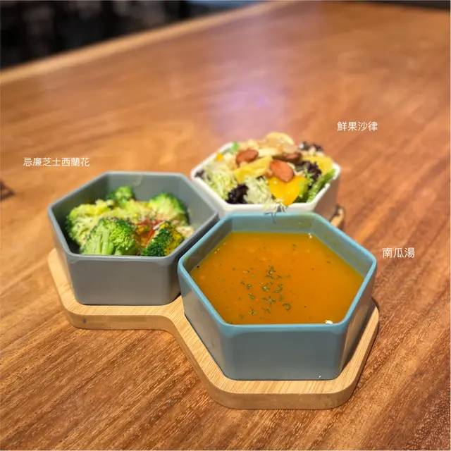 Ovo cafe装修完之后联同大饭糖推出新menu,餐牌上部分菜式含蛋、奶或五辛,有清晰表示素别。特上套餐卖相精致,食完都几饱,套餐价钱根据主食嘅价钱而定。特上套餐 Jumbo Set1. 餐汤/沙律2. 小食3. 主菜4. 甜品5. 饮品芒果金柚有机沙律紫薯甘栗饼 (含蛋)紫薯甘栗饼好好食,外皮炸得酥脆,但一D都唔油,入面嘅紫薯馅质感绵滑,夹有栗子粒。旁边伴有2块素虾片,几香脆。忌廉汁芝士焗西兰花 (含奶)呢款小食亦有纯素版本,不过要另加$10。西兰花表面铺有芝士,勉强有拉丝嘅效果,但我觉得芝士嘅份量唔够多。芝士田园野菜玉米石斑扁意粉 (含奶) ($148)石斑嘅质感似Green Common嘅素鱼柳,酱汁用上粟米汤整成,所以整体感觉唔会太腻。韩式野菜虫草花炒粉丝 ($138)清清哋嘅炒粉丝伴有少少麻油味。配料有本菇、虫草花、椰菜等。宇治金时表面放有红豆同糯米团子,底下似系抹茶味嘅蒟蒻,味道比较甘。新鲜水果盘柠檬冷萃荔枝乌龙茶似饮紧冻柠茶。风干白桃乌龙茶 (热)…查看更多