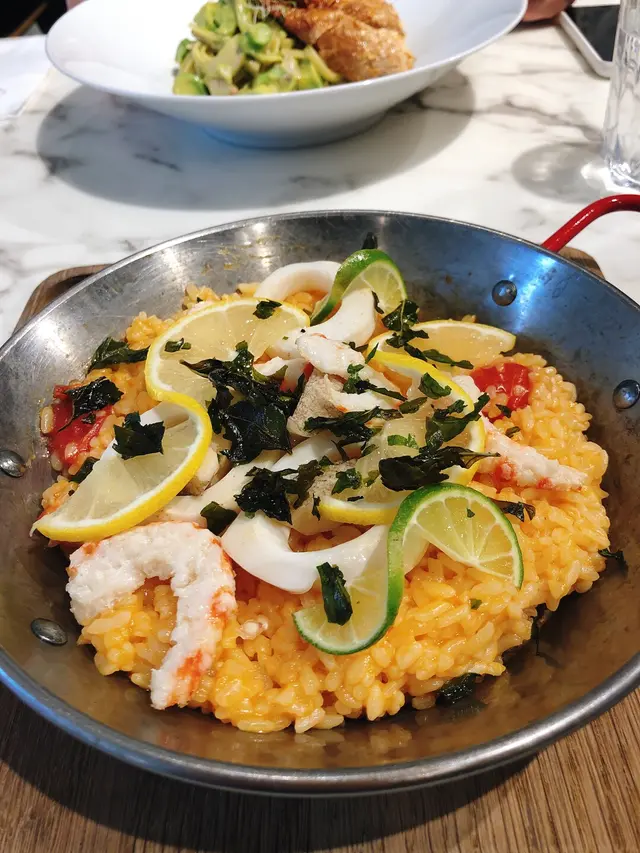 Ovo cafe同Green Common合作係上環開呢間餐廳環境幾靚,幾舒服。因為有嚴格素食既朋友,所以餐廳選擇唔多,就去左ovo cafe。我點左個海鮮飯,上到黎份量都幾細,但係味道真係幾好。海鮮都係仿既,但係做出黎既口感好彈牙,雖然唔係百分百似真海鮮,但係都好驚喜下。遺憾既係份量比較細,女仔食都還可以,男仔食應該就唔夠飽啦。如果對比呢個份量既話,價錢上ovo cafe都偏貴,但係午市都有唔少OL捧場。…查看更多