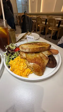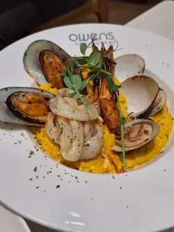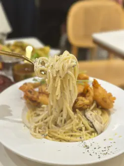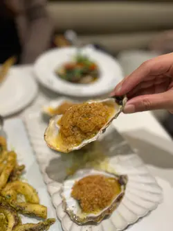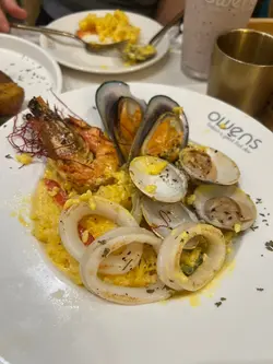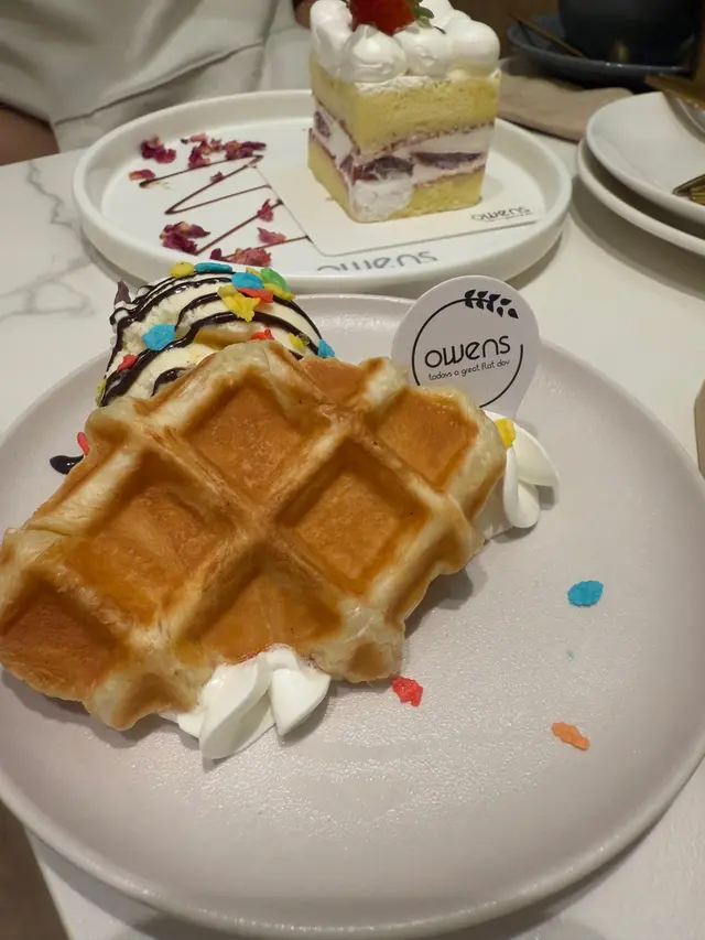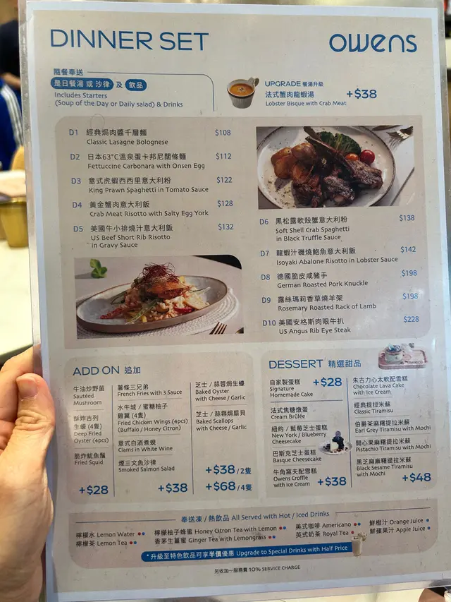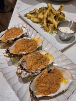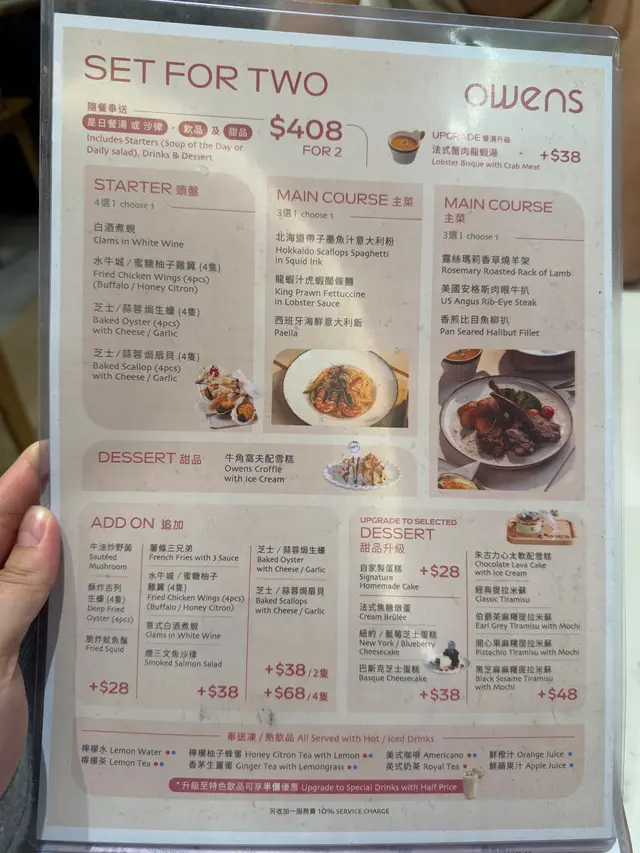 太子呢间人气爆棚嘅cafe, 食物同甜品都又靓又好食,性价比仲要好高, 难怪平日晚上都坐满。Set for two 抵食二人餐($408)二人餐包括咗餐汤/沙律及饮品,两款主食、一款小食以及甜品,真系超抵。蒜蓉生蚝四只生蚝大大粒好新鲜, 仍然保留住少少海水嘅鲜味, 大量蒜蓉超惹味,食完觉得唔够喉。西班牙海鲜意大利饭有大大粒青口、大虾、鱿鱼及蚬肉,好丰富同鲜味。有别于正宗西班牙饭既酸辣风味,佢以葡汁作取代, 更符合香港人嘅口味, 好执渗透每一粒饭, 味道好浓郁好creamy, 但又唔会盖过海鲜嘅鲜味。香煎比目鱼扒比目鱼扒色泽金黄, 外皮煎得非常香脆 ,内里鱼肉鲜嫩滑润,煎嘅火候控制得好好,保持咗鱼肉嘅鲜甜同嫩滑, 简简单单嘅调味已好食。 酥炸鱿鱼须(+$28)咁嘅价钱咁嘅份量真系超抵食,脆卜卜又弹牙, 表面洒咗海苔粉,加上他他酱, 一条接一条食过不停。意式白酒煮蚬(+$38)蚬肉鲜嫩无沙,蚬汁清甜,白酒既醇香令蚬肉更提鲜,酒既香气同蚬既鲜美相得益彰。牛角窝夫配雪糕一上枱已经充满牛油香气,好香好吸引, 牛角窝夫非常酥脆,外脆内软。 雪糕嘅软滑与牛角窝夫嘅酥脆形成绝妙对比, 冰冻嘅雪糕与温暖嘅牛角窝夫带比人唔只双重嘅享受。开心果麻糬提拉米苏(+$48)餐厅嘅招牌甜品,几乎见到每一台都有叫。 表面布满咗大量新鲜嘅开心果碎,好有咬口,中间系开心果酱mousse, 口感顺滑浓郁, 包裹住一粒粒非常烟韧Q弹嘅麻糬, 最底层系tiramisu蛋糕,咖啡与酒香融合得刚刚好, 味道同口感嘅层次都极丰富!…查看更多
