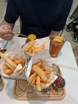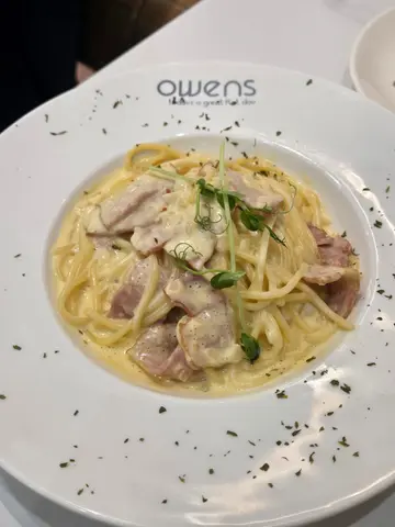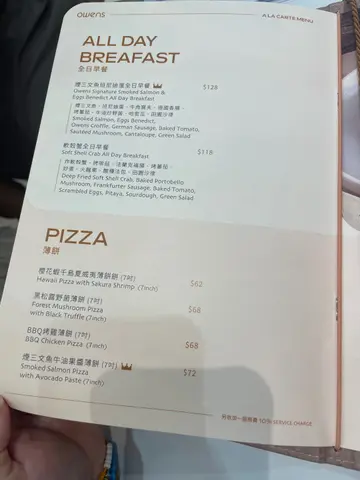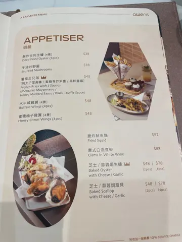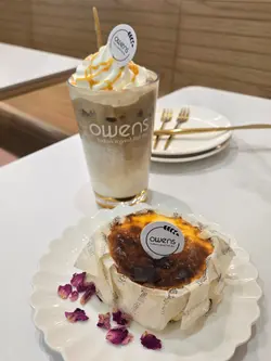 #pb食在屯门 #pbcafe系列 屯门新开高质抵食咖啡店☕️Owens一向系太子都好出名、好受欢迎成日大排长龙😍 继上年9月系将军澳开设第一间分店 今年暑假又再系屯门Vcity开设第二间分店👍🏻 新分店以木系、白色装修 环境好大 主要分左两边🤪 商场边位置较多 座位比较密集 另一边望住马路 有自然光配搭 座位较阔落🤪 呢排暑假平日下午去到都好多人排队 几受欢迎🥰.Lunch Set有9款选择 有沙律、Pasta、ADB、扒类选择😋 价钱$62-132不等 包餐汤/沙律、饮品 几抵食👍🏻 另外佢仲有Cake Set 一款甜品(蛋糕、心太软、窝夫、Tiramisu等)加饮品 价钱$58😍 🔹法式蟹肉龙虾汤🦞龙虾汤口感偏杰身 味道好浓😋🔹脆炸鱿鱼须🦑推介❤️ 口感香脆 味道唔会过咸👍🏻🔹芝士&蒜蓉焗扇贝🐚推介❤️ 一上枱已经闻到好香😍 蒜蓉味好香浓 芝士味相对味道较淡🤪🔹明太子海虾意大利粉🍝相对比较失望🥲 佢用左明太子沙律酱去煮个意粉 而唔系忌廉 所以整体味道偏酸😢 本身意粉、虾嘅口感系唔错🥹🔹香烤鸡扒全日早餐🐣推介❤️ 呢份ADB入面有烤鸡扒、烤啡菇、法兰克福肠、烤蕃茄、炒蛋、哈密瓜、Sourdough、田园沙律 几足料👍🏻 鸡扒、法兰克福肠煎得刚刚好 肉质仲好嫩滑、juicy😋 最特别系佢有哈密瓜 最后食有种解腻嘅感觉😍🔹自家制蛋糕 - 草莓忌廉蛋糕🍰推介❤️蛋糕口感松软 就算中间有层cream都唔会好漏😋🔹黑芝麻麻糬提拉米苏🧁推介❤️ 呢款系季节限定味道Tiramisu每日新鲜制作👍🏻 黑芝麻味超香浓 一食就feel到用左好多黑芝麻 食到最后会食到微微咖啡味😍 Tiramisu中间有层麻糬 口感软糯 好好食😋🔹阳光 · 灿烂🍹柚子、蜂蜜梳打味道好清新 岩哂夏天饮👍🏻🔹冻榛子鲜奶咖啡☕️榛子、咖啡味都好突出 超香浓😍.整体✨ 欢迎Owens黎到屯门Vcity😍 新分店环境好大、好舒服 平日下午都大排长龙🤪 Lunch Set、Cake Set价钱好抵食👍🏻 食物质素唔错 甜品好出色😋 相信一定会好受大西北人欢迎🥰Owens (屯门) · 🤝🏻🤪屯门乡事会路83号V City地下13及15号舖…查看更多