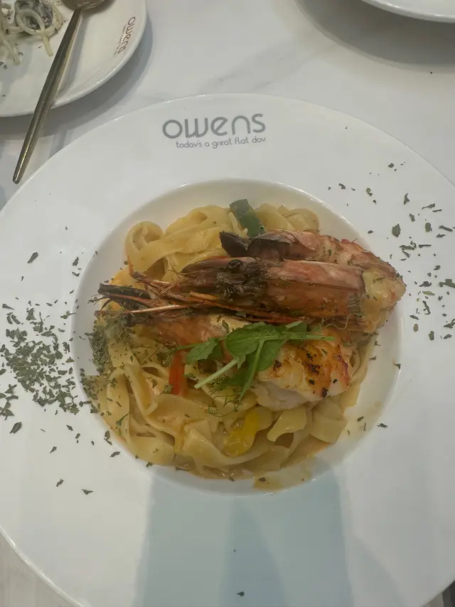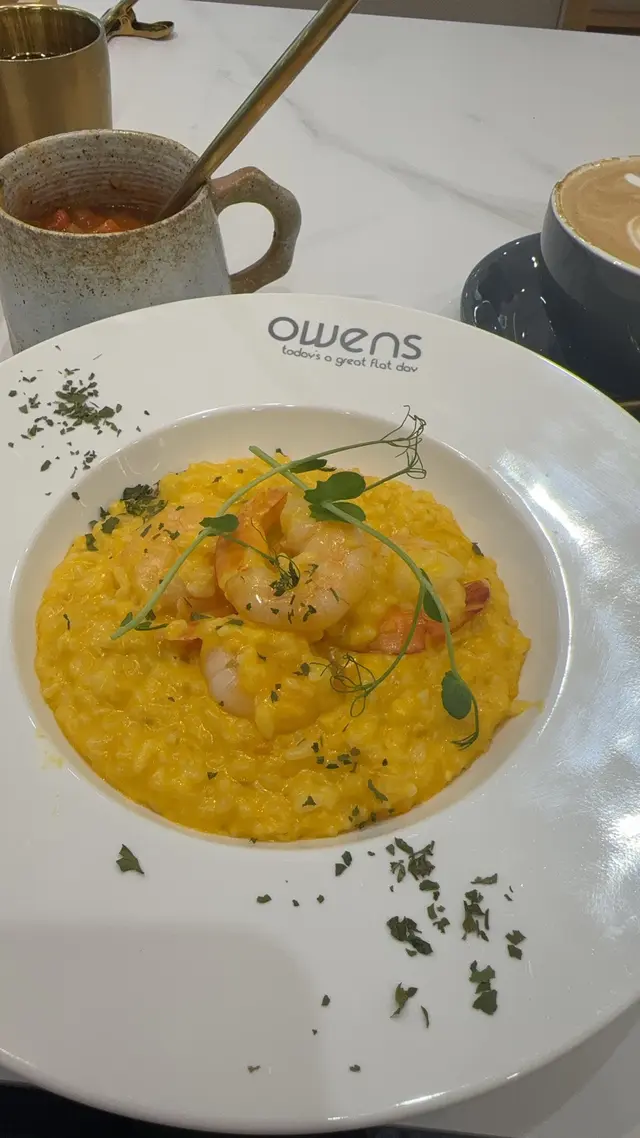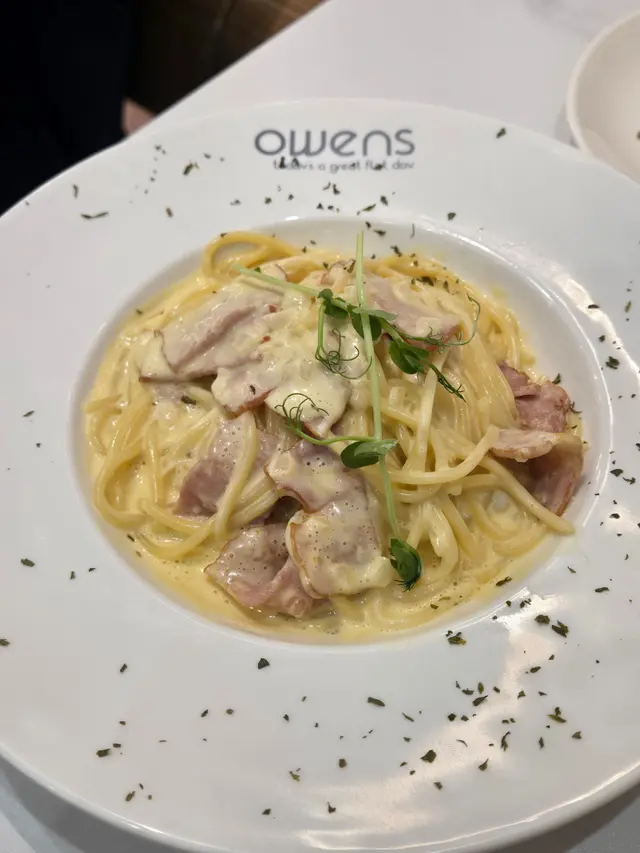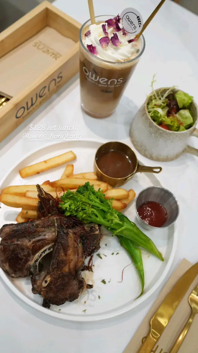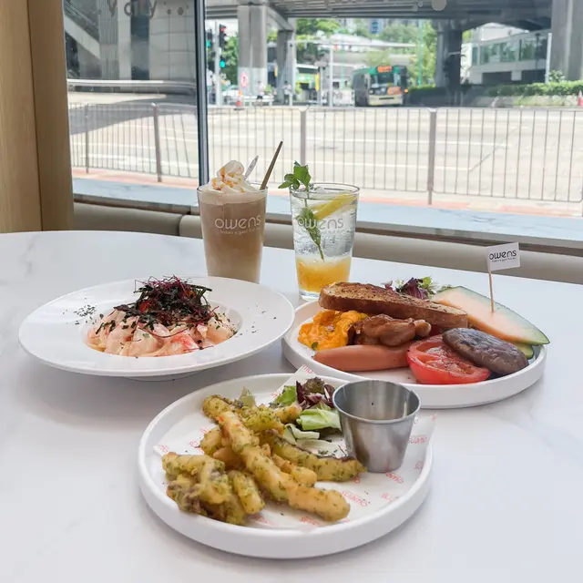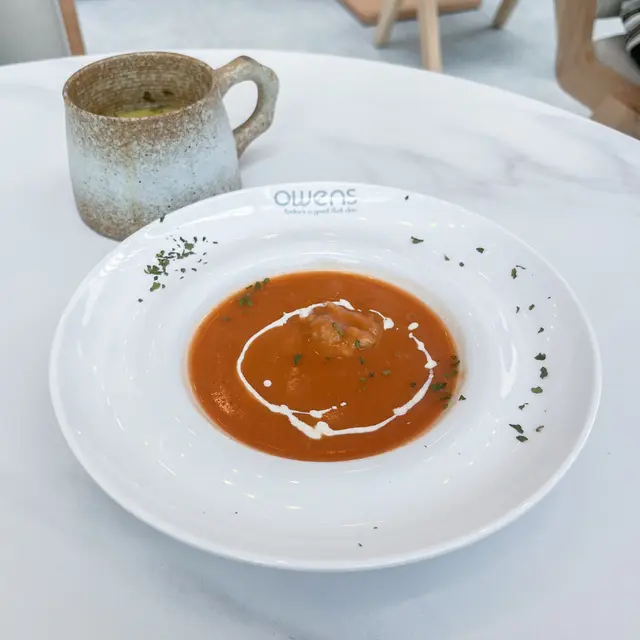 #pb食在屯門 #pbcafe系列 屯門新開高質抵食咖啡店☕️Owens一向係太子都好出名、好受歡迎成日大排長龍😍 繼上年9月係將軍澳開設第一間分店 今年暑假又再係屯門Vcity開設第二間分店👍🏻 新分店以木系、白色裝修 環境好大 主要分左兩邊🤪 商場邊位置較多 座位比較密集 另一邊望住馬路 有自然光配搭 座位較闊落🤪 呢排暑假平日下午去到都好多人排隊 幾受歡迎🥰.Lunch Set有9款選擇 有沙律、Pasta、ADB、扒類選擇😋 價錢$62-132不等 包餐湯/沙律、飲品 幾抵食👍🏻 另外佢仲有Cake Set 一款甜品(蛋糕、心太軟、窩夫、Tiramisu等)加飲品 價錢$58😍 🔹法式蟹肉龍蝦湯🦞龍蝦湯口感偏杰身 味道好濃😋🔹脆炸魷魚鬚🦑推介❤️ 口感香脆 味道唔會過鹹👍🏻🔹芝士&蒜蓉焗扇貝🐚推介❤️ 一上枱已經聞到好香😍 蒜蓉味好香濃 芝士味相對味道較淡🤪🔹明太子海蝦意大利粉🍝相對比較失望🥲 佢用左明太子沙律醬去煮個意粉 而唔係忌廉 所以整體味道偏酸😢 本身意粉、蝦嘅口感係唔錯🥹🔹香烤雞扒全日早餐🐣推介❤️ 呢份ADB入面有烤雞扒、烤啡菇、法蘭克福腸、烤蕃茄、炒蛋、哈密瓜、Sourdough、田園沙律 幾足料👍🏻 雞扒、法蘭克福腸煎得剛剛好 肉質仲好嫩滑、juicy😋 最特別係佢有哈密瓜 最後食有種解膩嘅感覺😍🔹自家製蛋糕 - 草莓忌廉蛋糕🍰推介❤️蛋糕口感鬆軟 就算中間有層cream都唔會好漏😋🔹黑芝麻麻糬提拉米蘇🧁推介❤️ 呢款係季節限定味道Tiramisu每日新鮮製作👍🏻 黑芝麻味超香濃 一食就feel到用左好多黑芝麻 食到最後會食到微微咖啡味😍 Tiramisu中間有層麻糬 口感軟糯 好好食😋🔹陽光 · 燦爛🍹柚子、蜂蜜梳打味道好清新 岩哂夏天飲👍🏻🔹凍榛子鮮奶咖啡☕️榛子、咖啡味都好突出 超香濃😍.整體✨ 歡迎Owens黎到屯門Vcity😍 新分店環境好大、好舒服 平日下午都大排長龍🤪 Lunch Set、Cake Set價錢好抵食👍🏻 食物質素唔錯 甜品好出色😋 相信一定會好受大西北人歡迎🥰Owens (屯門) · 🤝🏻🤪屯門鄉事會路83號V City地下13及15號舖…查看更多